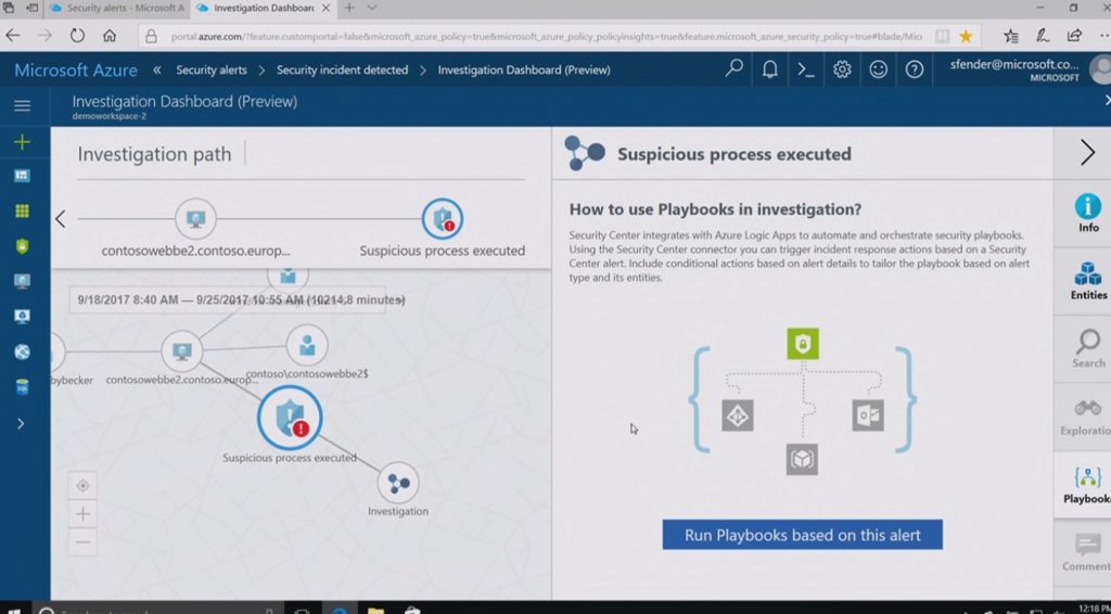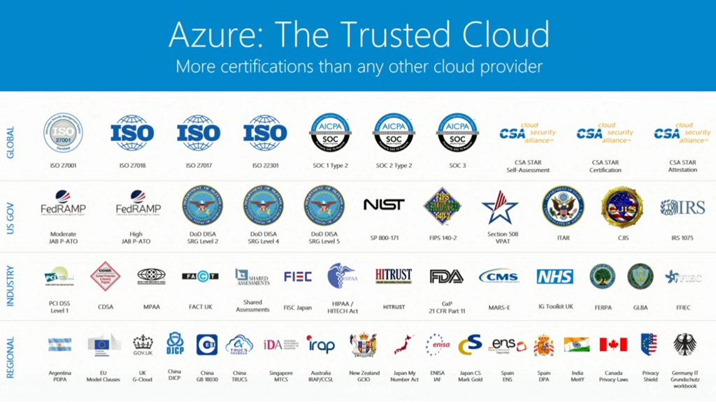 次はTrustedですね。各種認定のほかに、信頼されるクラウドにするためのサービスとしてはAzure Security Centerも提供してたります。デモはSarah氏。OSの脆弱そうなポイントを洗い出したり、ポートを必要な時だけ開けたりとかダッシュボードでまとめて把握しあり。インシデントが発生した場合、詳細を確認したり。誰が・どこから・どこへ・何してるかなど大事な情報を把握することができます。![]()
