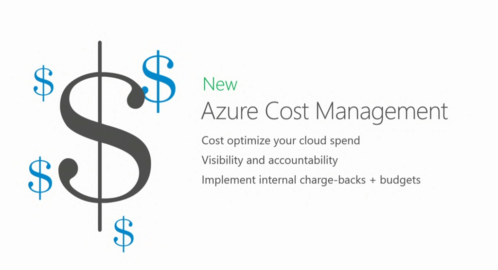 さて大事なコストの話。唐突ですがAzure Cost Managementがでました。また併せてコスト削減に役立ちそうなReserved VM Instancesも。デモはJulia氏ですね。スパイクしてるコストを把握して詳細見たりエクスポートしたりコストと予算を比較したり。そんな感じのAzure Cost ManagementはFreeでお使いいただけますとアナウンス。![]()