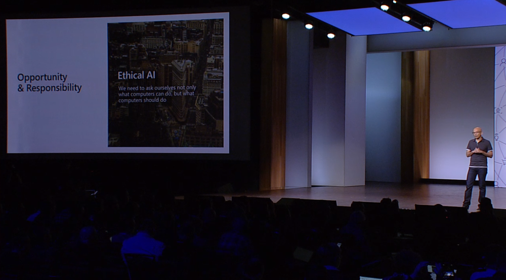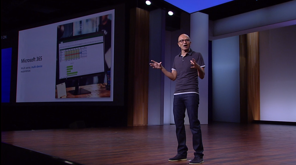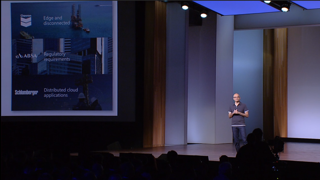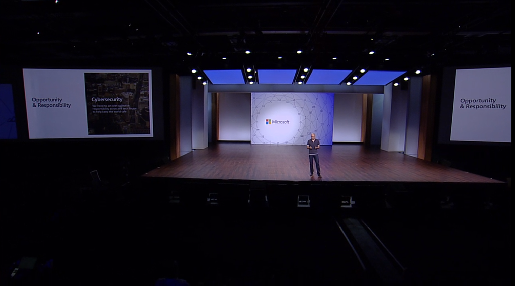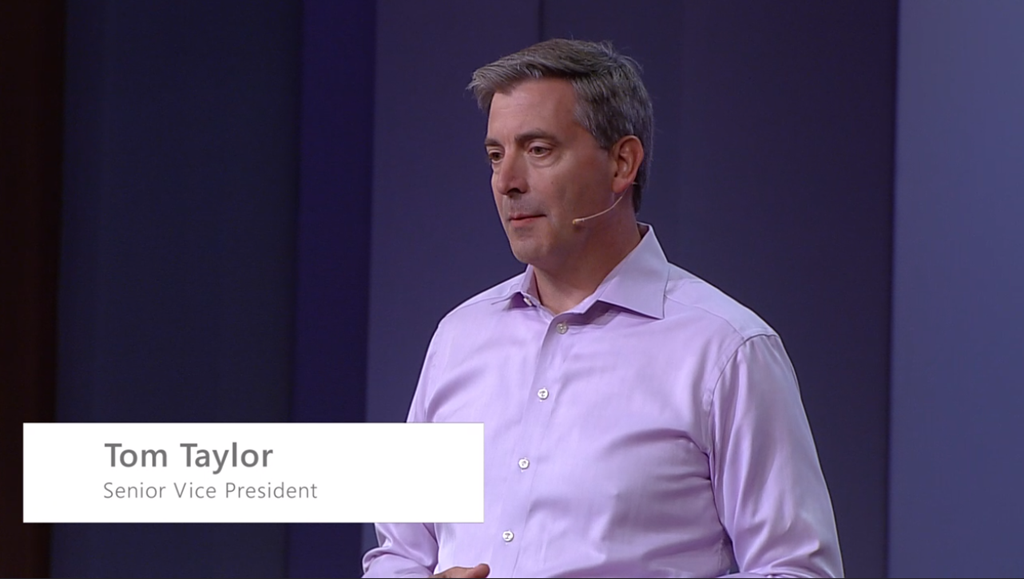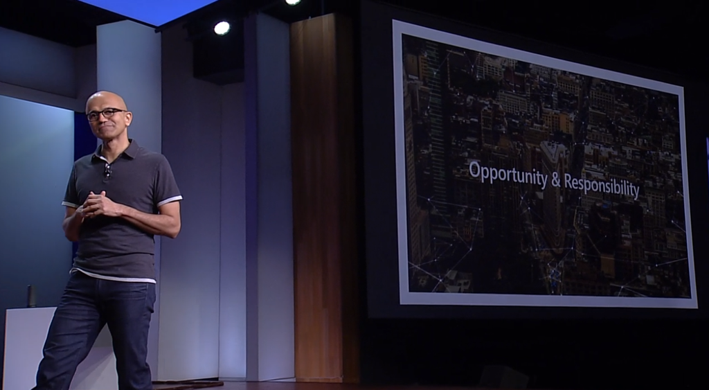 本編まちかね。最初はCEOのSatya氏から。ビルゲイツがAppleについて語るようになったとかMicrosoftは新しくなったとかでつかみはOK(?)。産業革命の話とかもおなじみですね。産業とITの関わりの変化(デジタルトランスフォーメーション)とかコンピューティングパワーとか2年後どうなるか的な話。![]()