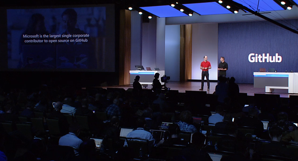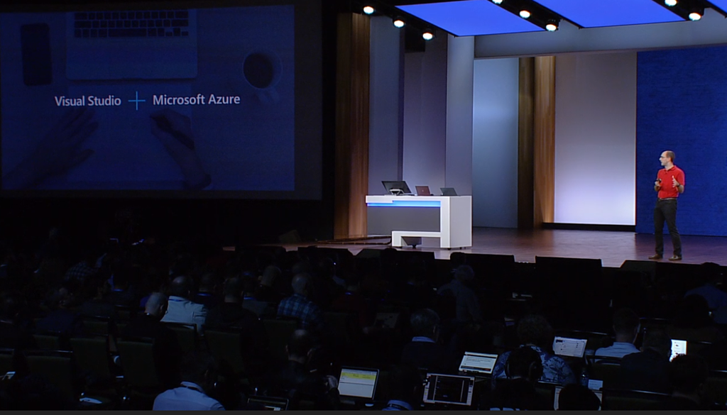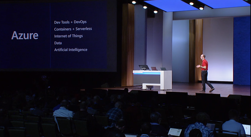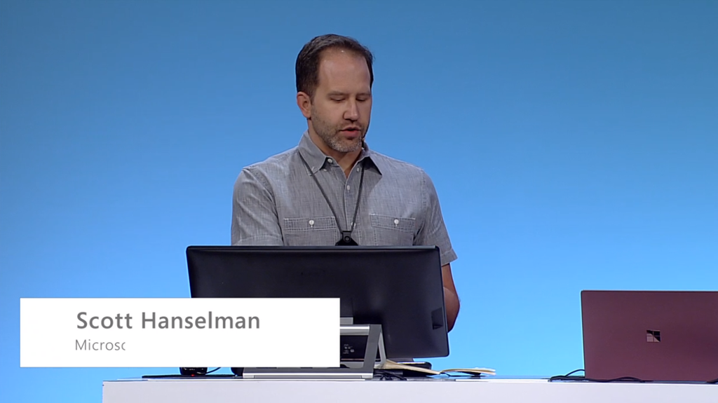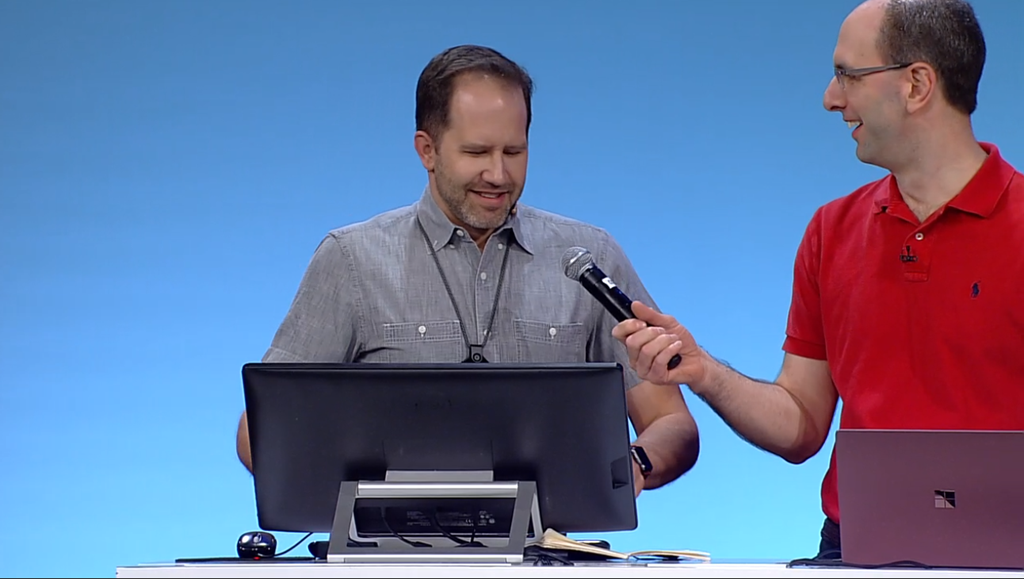 というところでマイクトラブル。ハンドマイクの持ち方悩んでるとScott Guthrie氏が持ってあげるというやさしさ。![]()