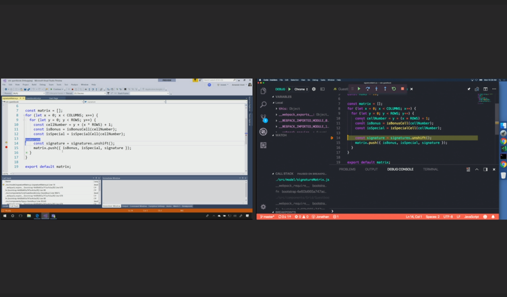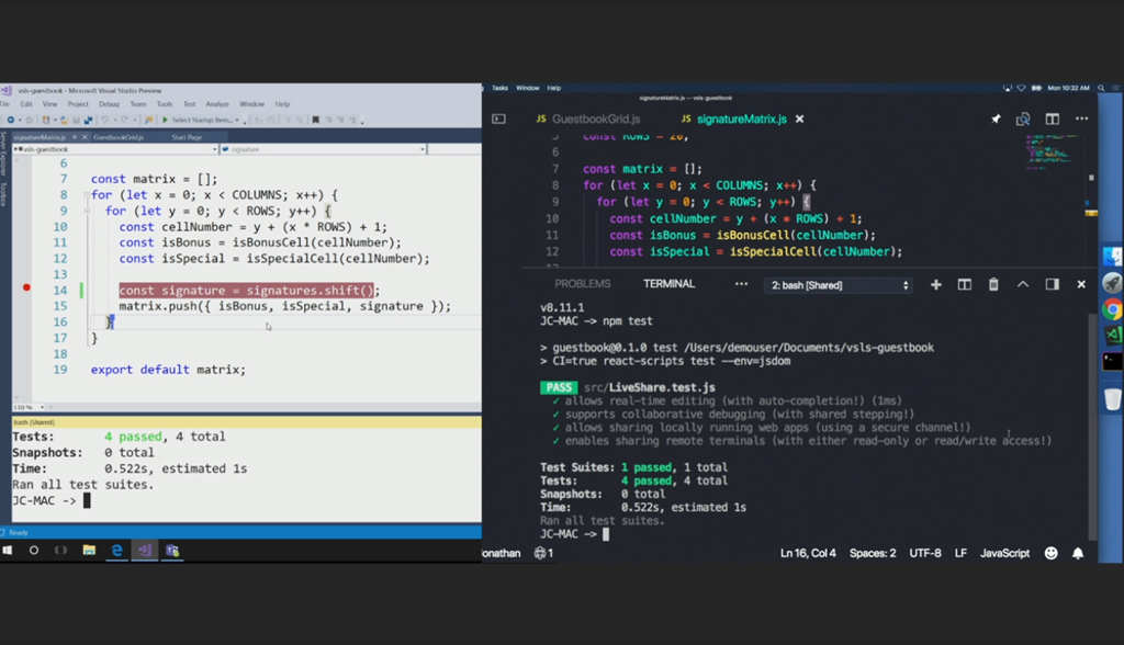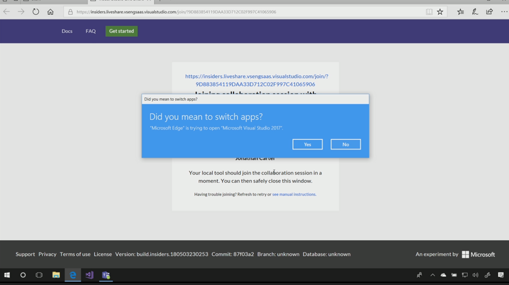 Visual Studio Live ShareがPublic Preview。デモはAmanda氏。うまく画像が表示されてないサイトの解発をLive Shareで。セッションを共有するリンクを開くと同じプロジェクトを別環境で開けます。編集などもリアルタイムで同期してるので同じPCで操作してるみたいですね。デバッグももちろんOK。という感じでLive Shareは無料で使えます。![]()