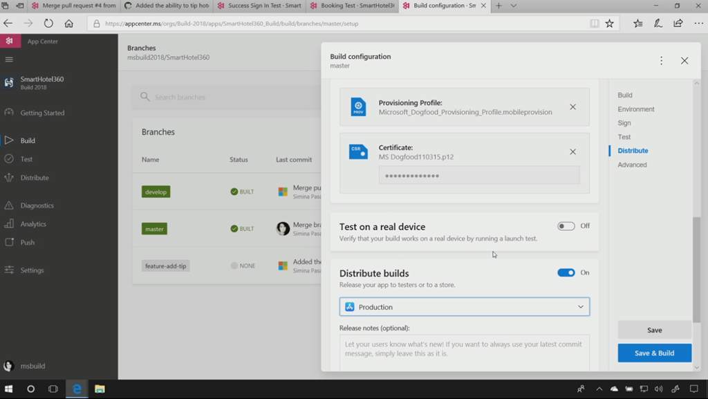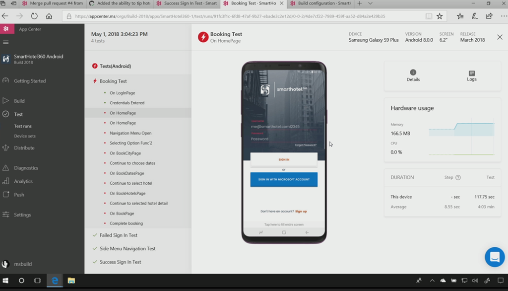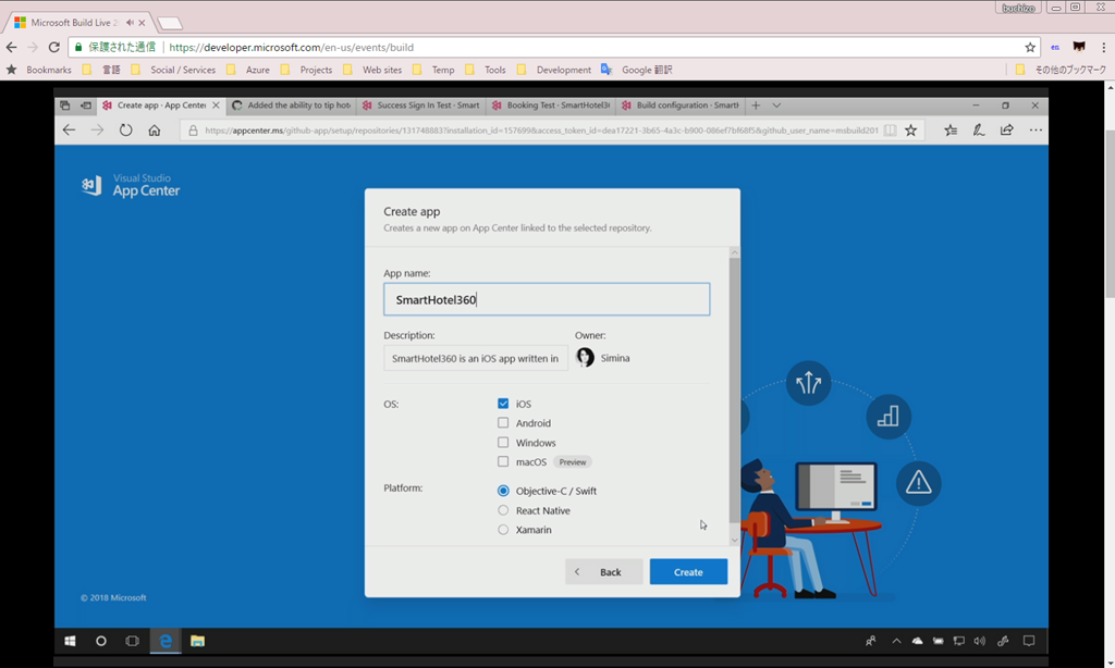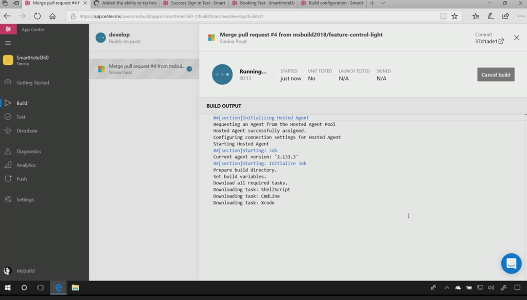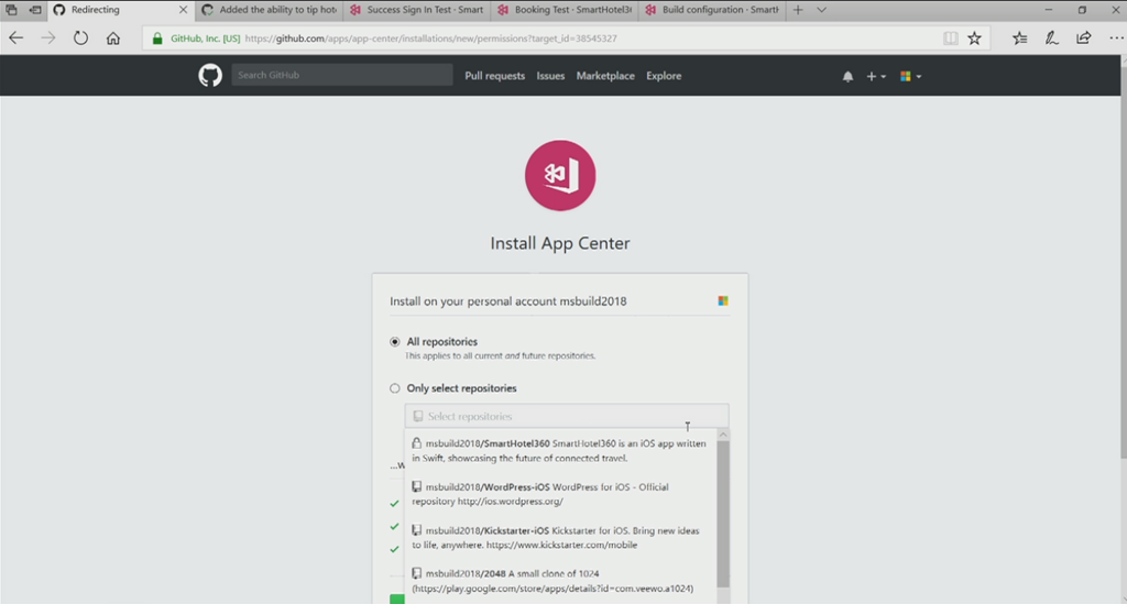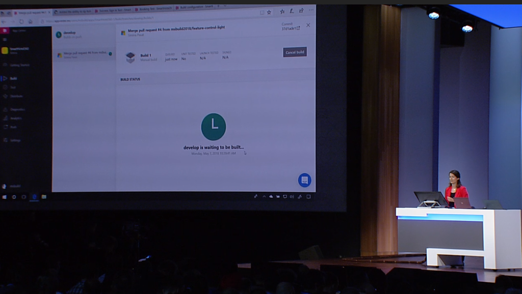 Microsoft <3 OSSで打ち出してますがここでゲストはGitHubのJason氏。Visual Studio App CenterとGitHubが統合できて直接やり取りできるようになりました。デモはSimina氏。GitHub上のMarketplaceでApp Centerを選んで追加するとVisual Studio App Centerを使ってCIを組めるようになります。Pull Requestと連動してビルド・UIテストしたり。![]()