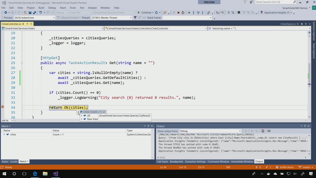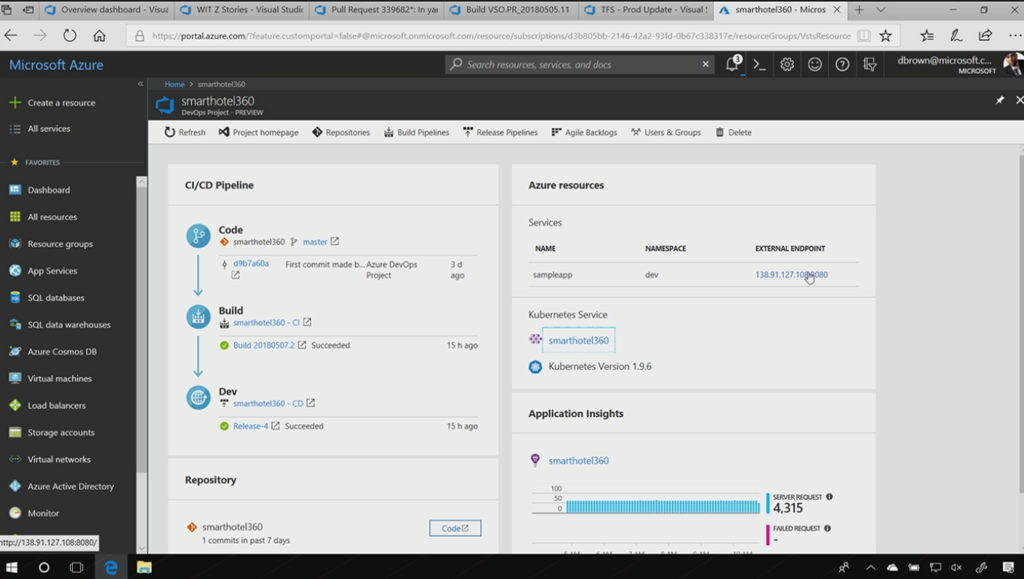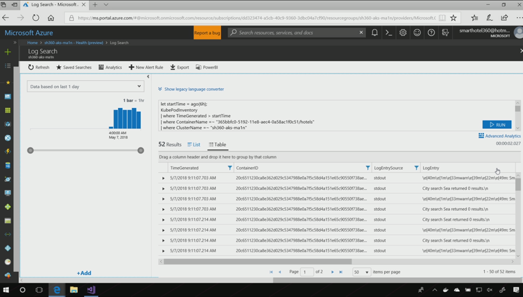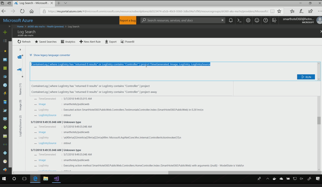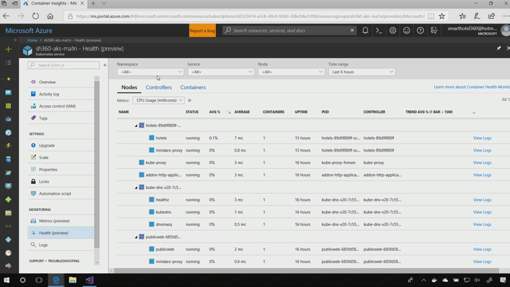 デモはScott Hanselman氏。8プロジェクトあるソリューションですね。マイクロサービスな感じでコンテナーで動作するプロジェクト。AzureのAKSで動いてます。ポータルがだいぶアップデートされてスケールも簡単だしノードの内容確認も簡単に。ログの横断的な検索などもサポートしてますね。![]()