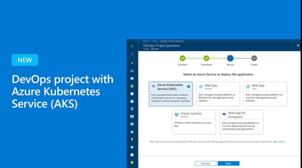 というわけでデモでもやっていたDevOps ProjectでAzure Kubernetes Service(AKS)が使えるようになりました。AKSではフルマネージドなK8sにオートパッチングなども対応。Dev Spacesもサポートです。![]()