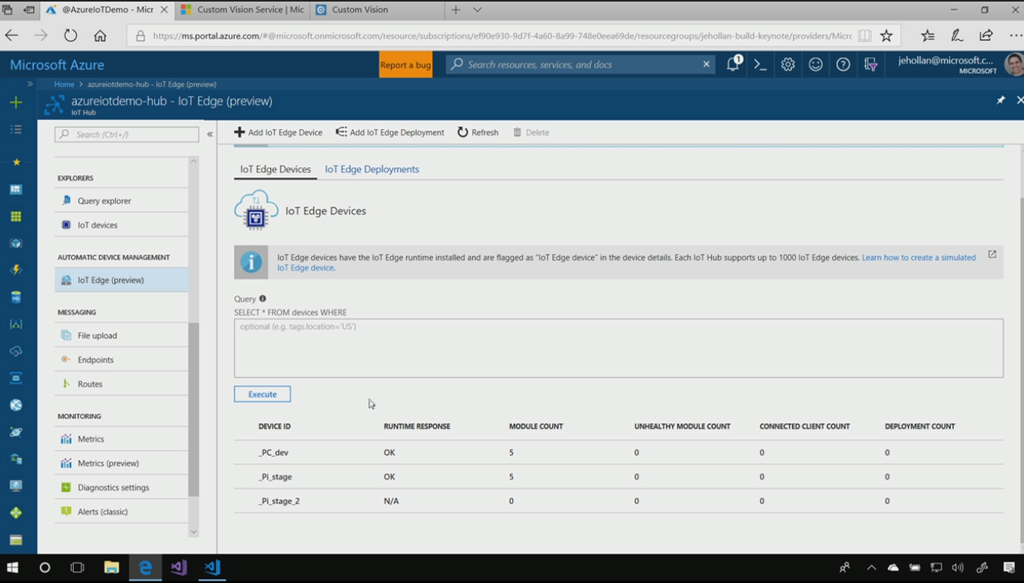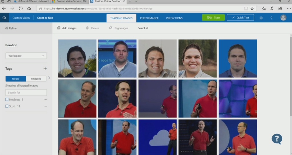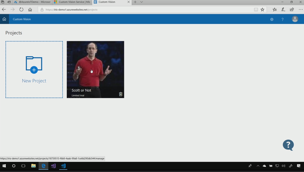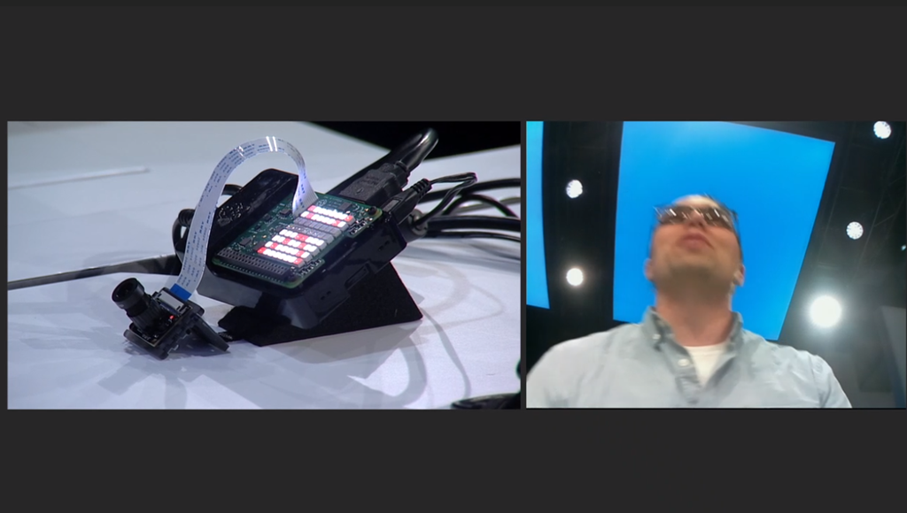 次のデモはIoT Edge上でCustom Visionを動かすデモ。Scott Guthrieかどうかをチェックするようです。IoT Hubを使うとEdgeデバイスの管理もできたりします。