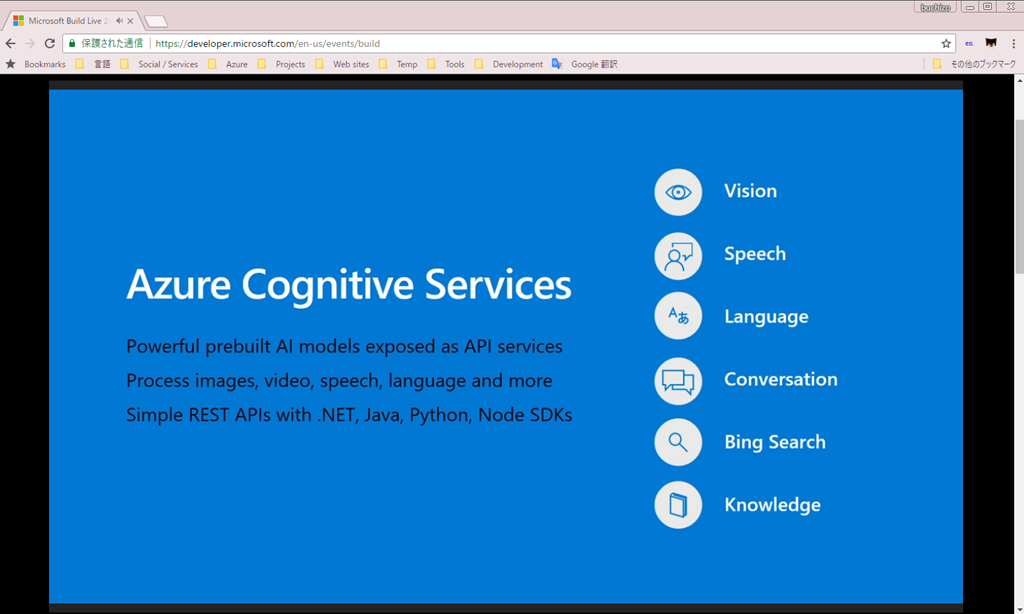 再びSatya氏に戻って続き。話題は引き継いでAIですね。AzureのAIといえばCognitive Services系。Xiaomiの翻訳デバイスとか。![]()