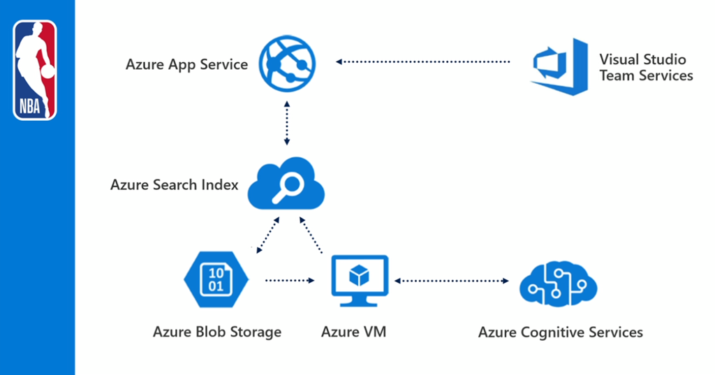 続いてCognitive Services。あとはAzure Searchと統合ということで検索がしやすくなる??事例はNBAのGarth氏。NBAで実際に使ってるサイトやアプリの話ですね。画像からプレイヤーの顔検出したり動画からディフェンスシーン探したりプレイヤーのつながりGraphだしたりとかいろいろ。![]()