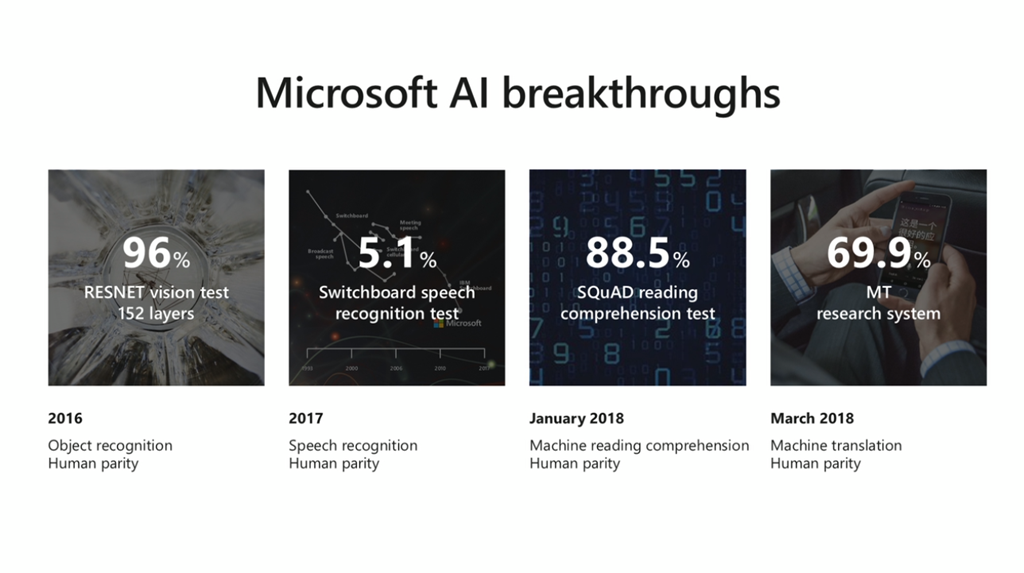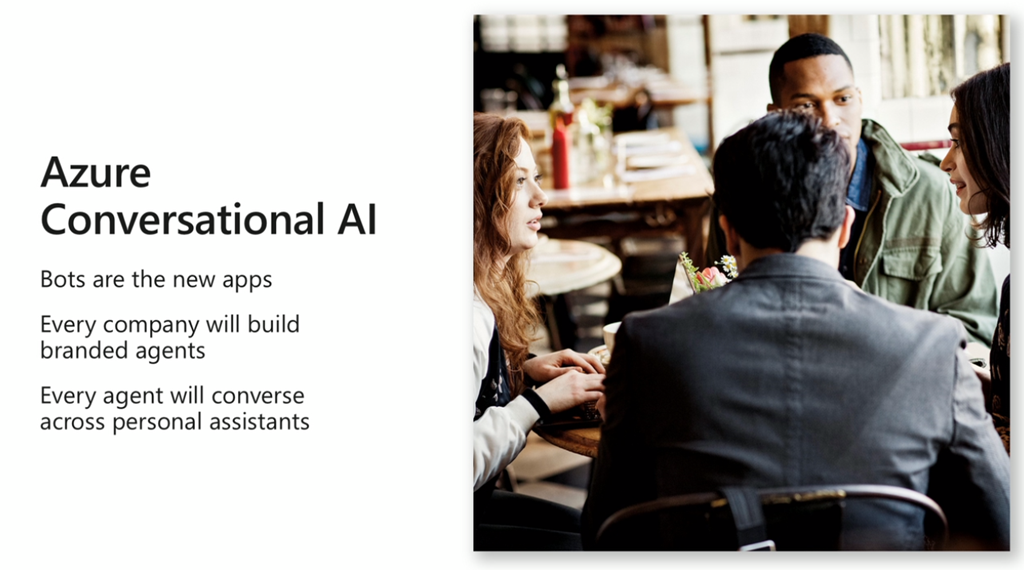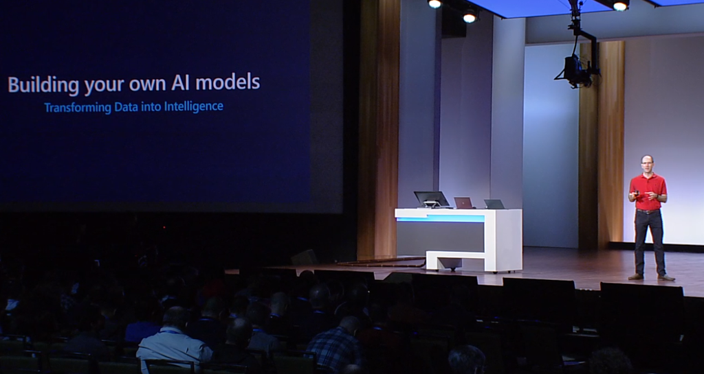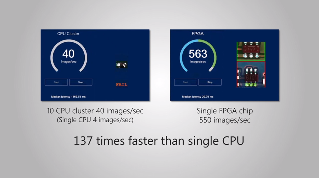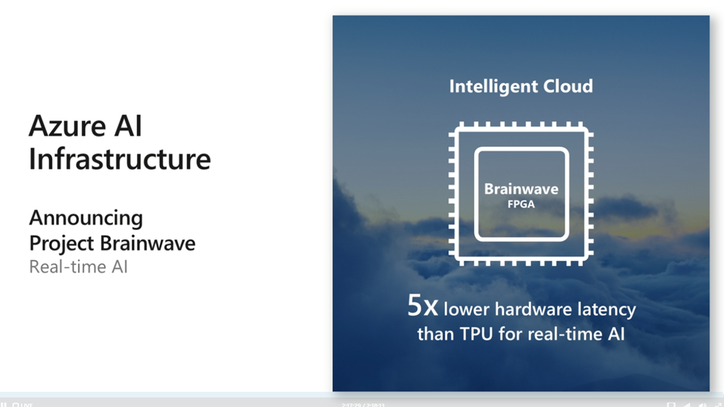 次は会話するAIですね。パーソナルアシスタントとかBotの話。今はAzure BotでBot作るのもだいぶ簡単になりましたね。Project Brainwaveの話もでました。JABILでFPGA使って検査したりする事例も紹介。![]()