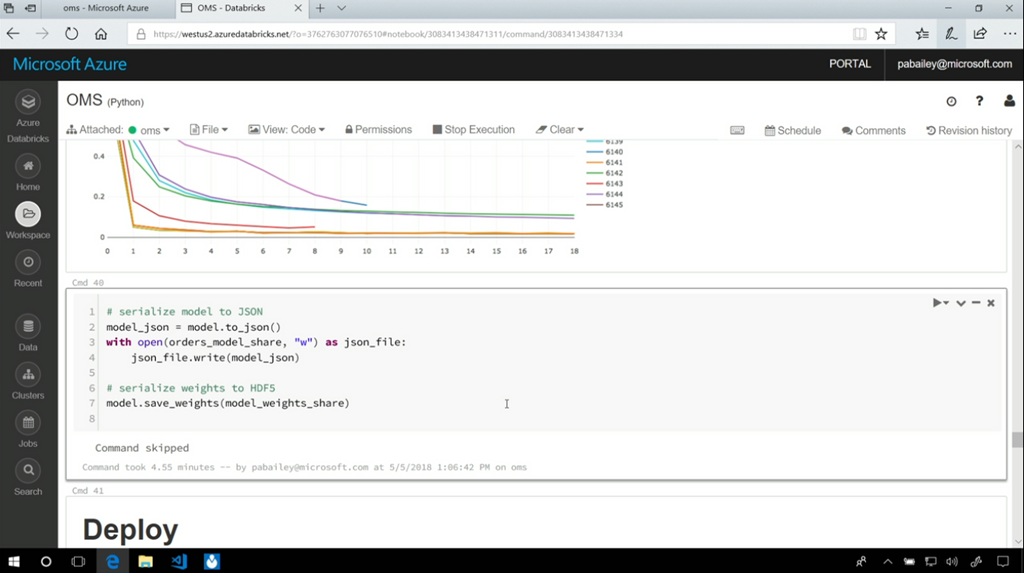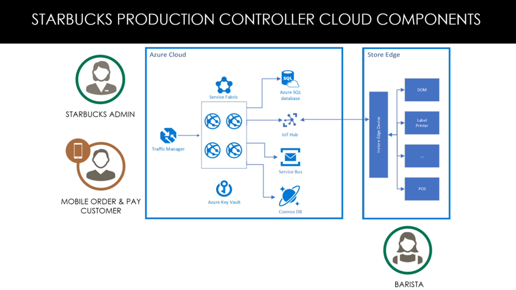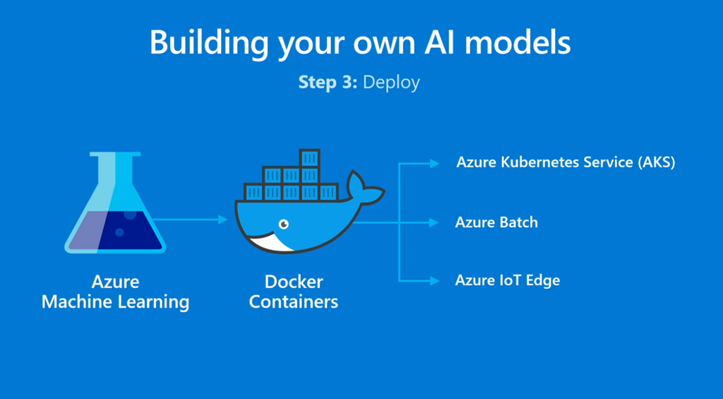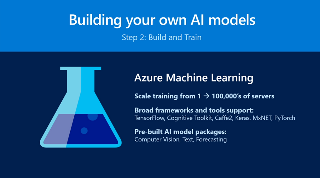 次のお題は自分でAIモデルを作るという話。Azure DatabricksやAzure Machine Learningといったサービスが使えます。事例はスターバックス。Service FabricやDatabricksでTensorFlow使ったりしてますね。![]()