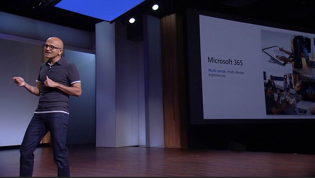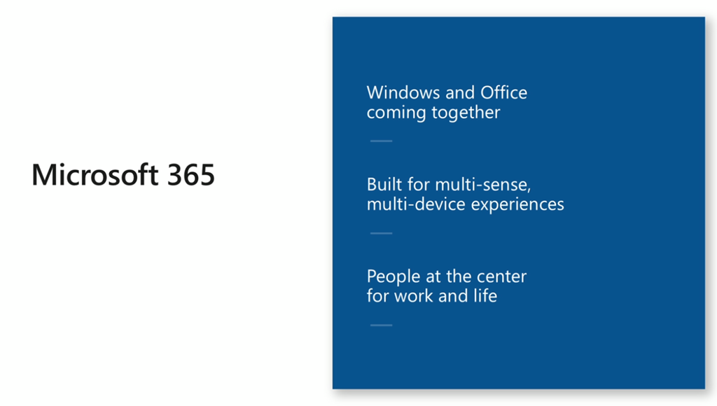 次はMicrosoft 365の話。仕事や人生の中心に人がいるということでデバイス・アプリなどを統合的に提供しようという感じですか。![]()