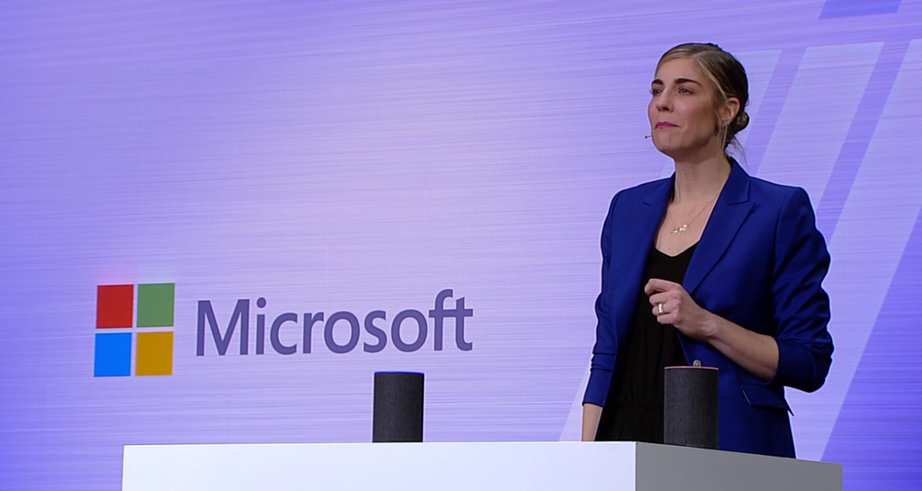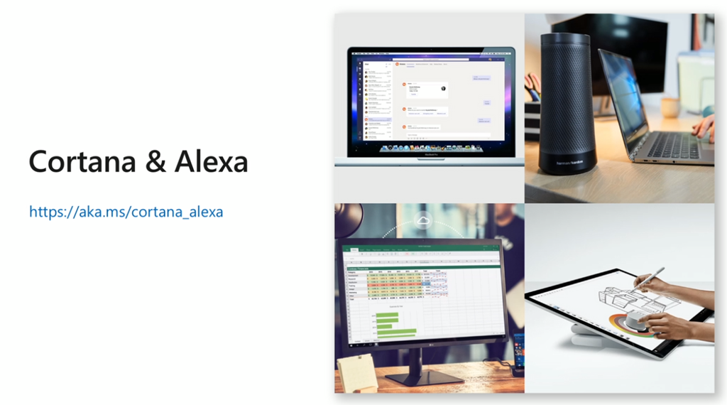 そしてパーソナルアシスタントのCortanaの話。Alexaとも連携します。![]()