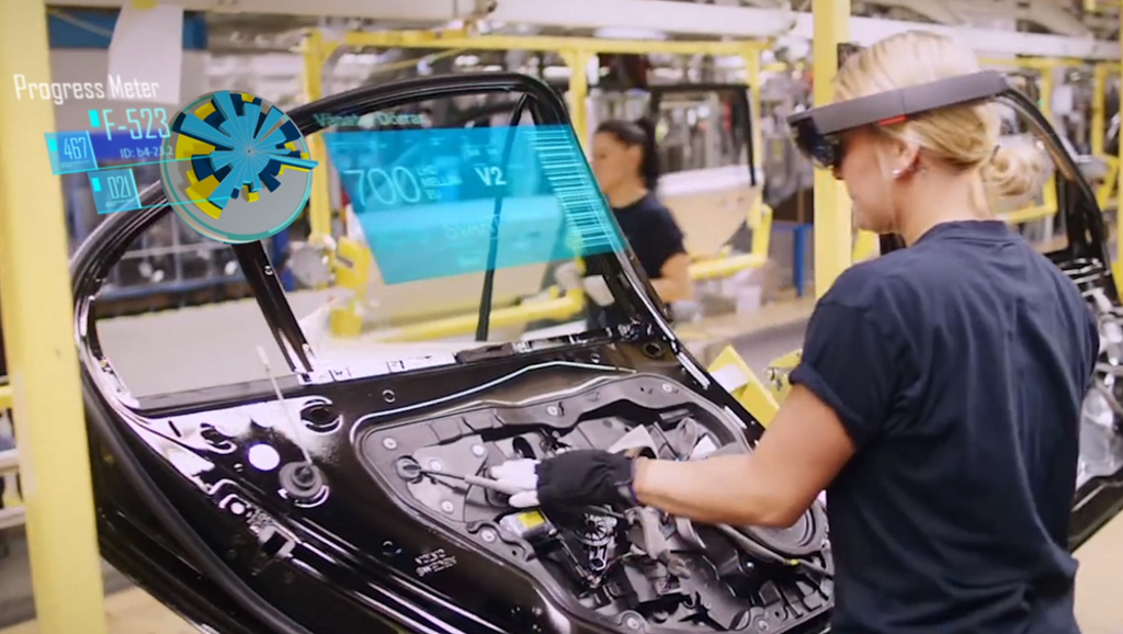 というところでDemo。最初はLorraine氏から。工場内でのHoloLens活用の事例とか。![]()