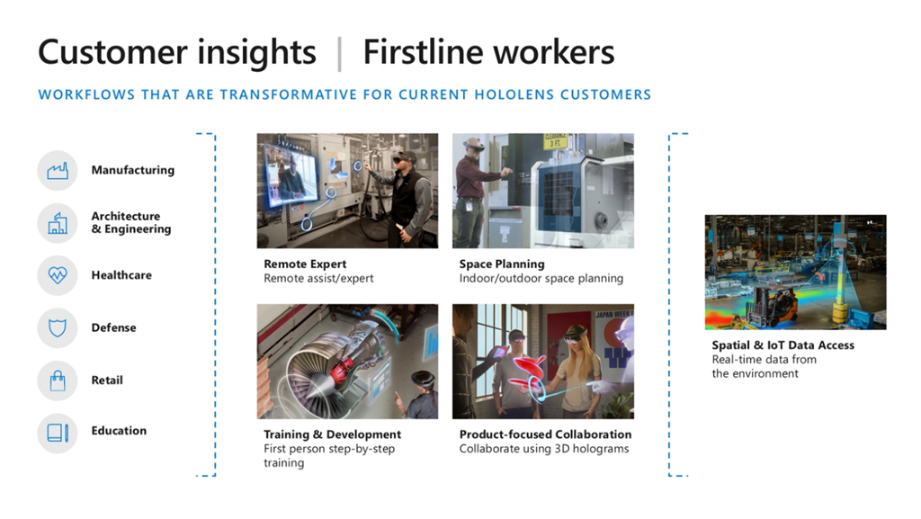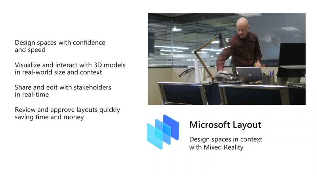 そんな状況を改善するためのツールとしてMicrosoft Remote AssistとMicrosoft Layoutを5月22日から提供開始かな(日付間違ってるかも)。事例は実際にLayoutやセンサー情報使って安全なルートを提示したり置き場所確認したりとか。![]()