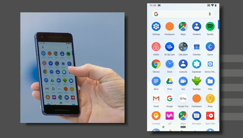 次はAndorid。Andorid Pのアナウンスですね。バッテリー問題は大変そうだ。日光下とかでも見やすくなるようにブライトネスもAdaptiveに。![]()