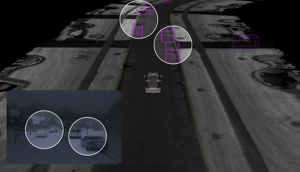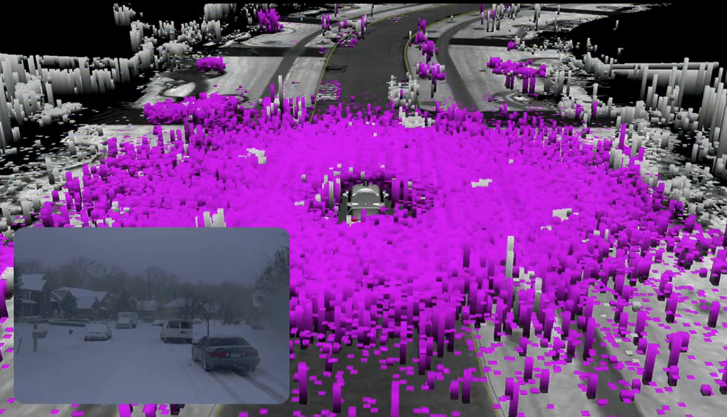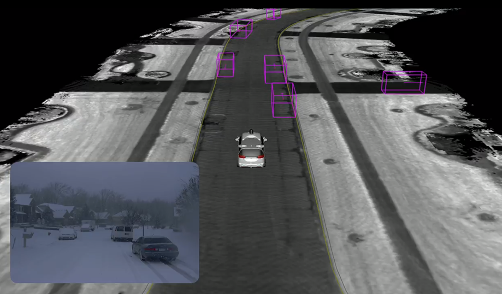 次は自動運転関連。WAYMOですね。深層学習ばりばりです。交差点に進入してくる車を予測してスピード落としたり。雪道でもOK。![]()