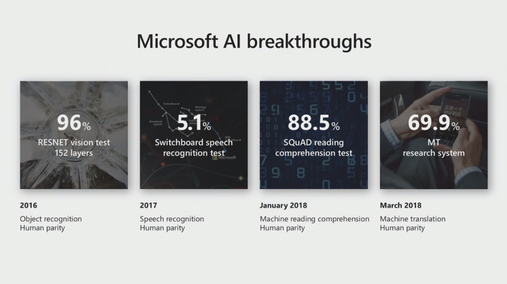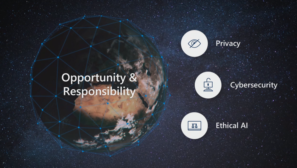 予告通り(?)今日はSatya氏。Readyも一緒なんで社員もたくさん。1700万人のパートナーと社員がこの部屋に参加してるよみたいな。私たちを結びつけるものは私たち(MS)の成功だけでなく顧客が達成した成功だ。ユビキタスコンピューティングの祖のMark Weiserの言葉を引用して「The most profound technologies are those that disappear. They weave themselves into the fabric of everyday life until they are indistinguishable from it.」(最も深刻な技術は消えているものです。 彼らはそれが区別できなくなるまで、日々の生活の中に織り込まれています)。世界のGDPにおける技術支出の割合は5%から2030年には10%に。プライバシーやサイバーセキュリティー、AIの倫理について機会と責任がある。プライバシーは人類の基本的な人権。GDPRにも言及。GDPRだけでなく様々なコンプライアンスを確実にするのを約束。![]()