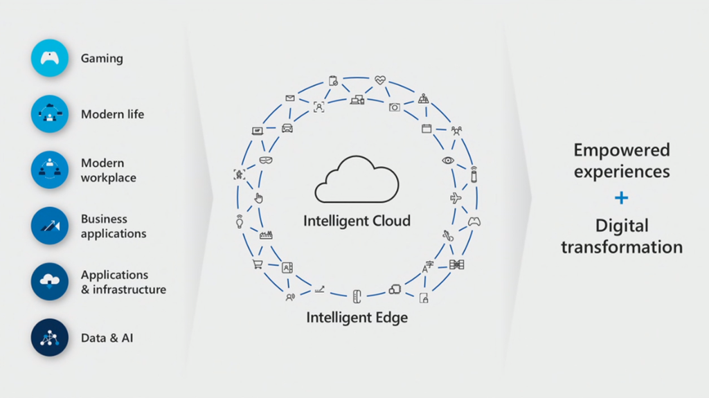 Microsoftのミッション。地球上のすべての人とあらゆる組織がより多くのものを達成できるようにEmpowerする。Intelligent Cloud/Intelligent Edgeの話。データセンターの話からProject Natickの話(海中データセンターのプロジェクト)。海岸沿いに80%の人口が住んでるのでより近いところにデータセンターを、コンピューティングを。![]()