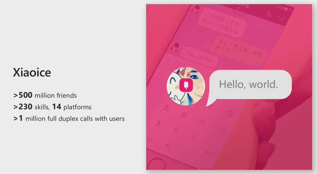 AIへの転換とか。各社での利用例など。ディズニーでは人工的な鳥の巣を管理したりとかかな。最後はXiaoice(シャォァイスかな?)。AIと合成音声で自動応答とか。AIの民主化。人中心で。![]()