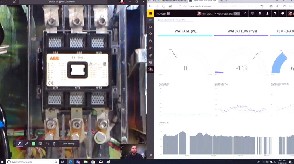 次はビジネスプロセス周り。Dynamics 365とか。HoloLensと組み合わせて。リモートアシスタントですね。Power BIで電力の状態みたり回路図みながら復旧作業を指示して無事復旧的な。HoloLens上でPower BIみたらちゃんと復旧してるのがわかります。![]()