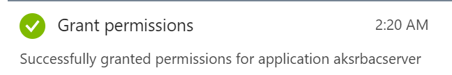 注意点はサーバーサイド(k8sのAPI Server内)で使用する(と思われる)アプリケーション(ドキュメントだとAKSAADServer)に対してGrant Permissionsをちゃんとしておきましょう。利用するAPIに管理者の承認が必要なものがあるので、管理者側で許可を与えて置く必要があります。Admin Consent使ってもいいのですが大変なのでポータルのボタンぽちーで済むのでいいですね。またこの操作はテナント管理者でないとダメなので注意しましょう。必ずGrant Permissionsが成功することを確認しておいてください。![]()