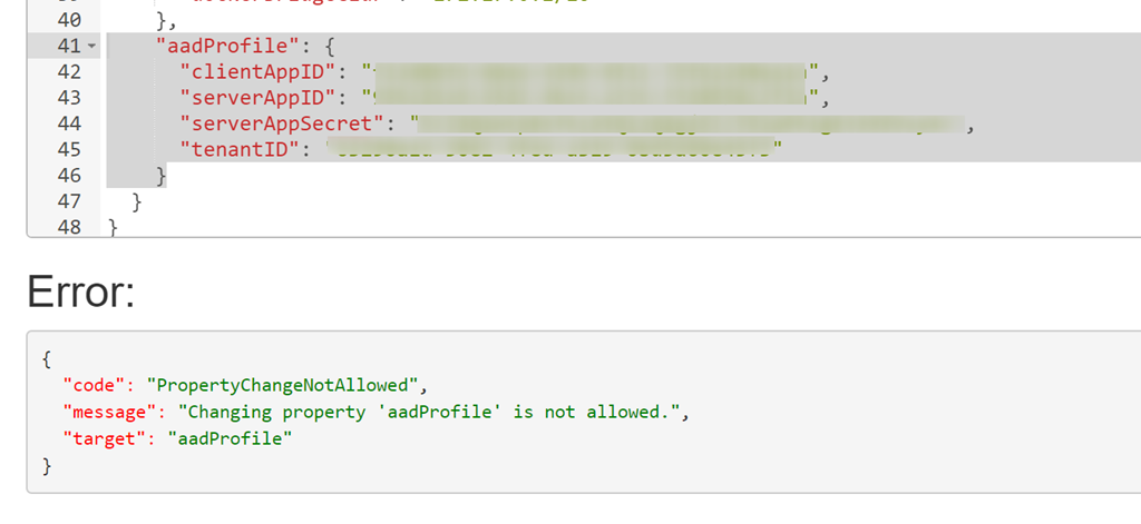 aadProfileは後からARM Explorerなどで追加しようとしてもエラーになります。(既存AKSに対しての更新に対応してくれることを期待したい)![]()