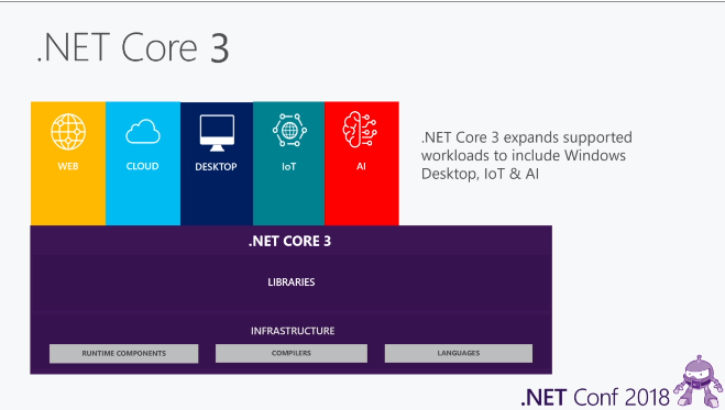 次は.NET Core 3のお話。.NET Core 3ではデスクトップアプリケーション向けの機能(WinFormsやWPF、Win10 APIなど)への対応が入りそう。![]()