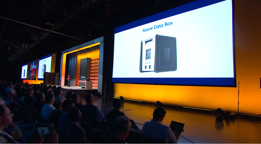 そしてScott Guthrie氏の登場です。最初のアナウンスはUltra SSD Disksですね。最大16万IOPS、1ms以下のレイテンシーなど。ExpressRouteの拡張にAzure Front Doorが新しくリリース。Virtual WAN、Azure FirewallはGAです。Data BoxもGAして新しいファミリーとしてHeavy、Edgeが。![]()