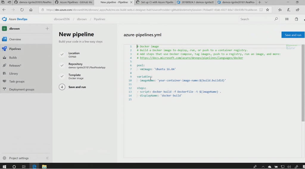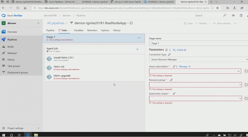 先日名前が変わったAzure DevOpsの仲間たち。デモは盛り上げ方が上手なDonovan氏。GitHubのMarketplaceからAzure Pipelineを接続できるようにもなりましたね。テンプレート選んでパイプラインを簡単に構成できたりします。YAMLもOK。これでGitHubにコミットされたソースでビルドが走ります。そのままリリース構成することもできます。Helm使ってK8sへデプロイしたりもOK。Boardでタスクみたり。![]()