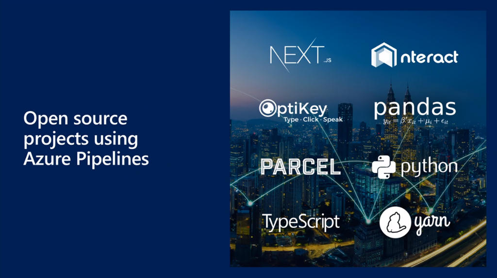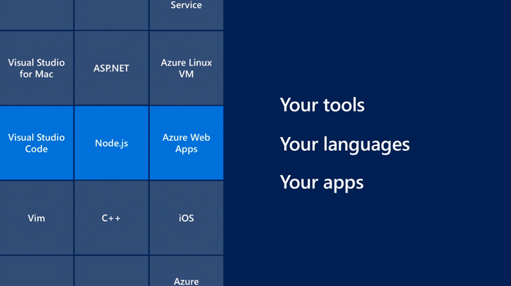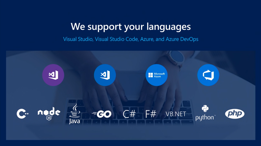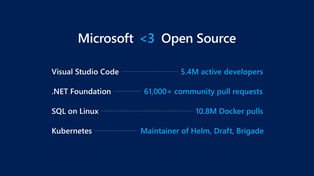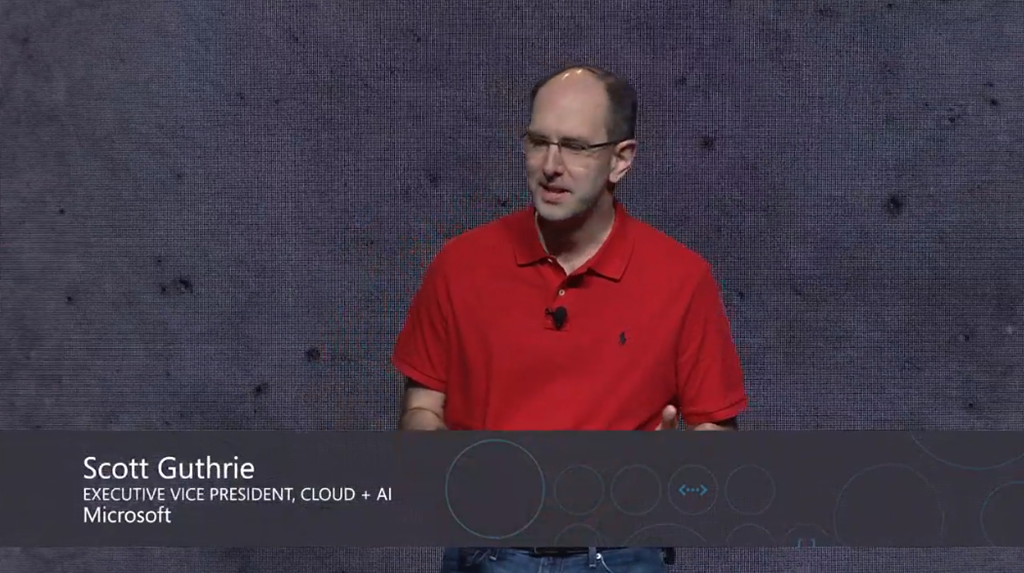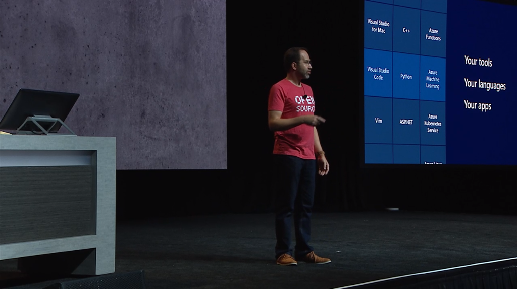 最初はScott Guthrie氏から。部署がCloud+AIになってますね。ソフトウェアといってもいろんな言語・環境・ツールの組み合わせで実行できます。![]()