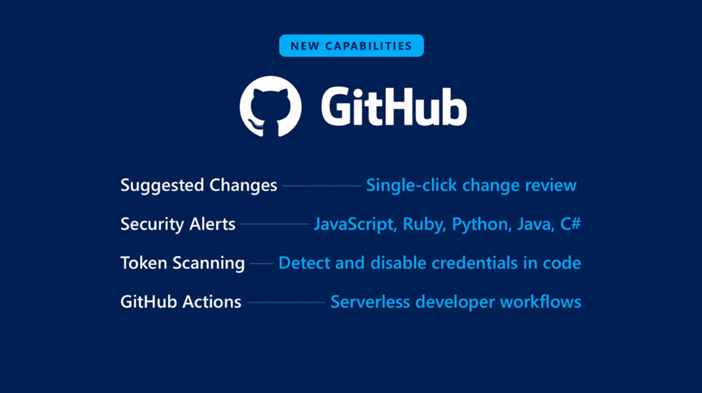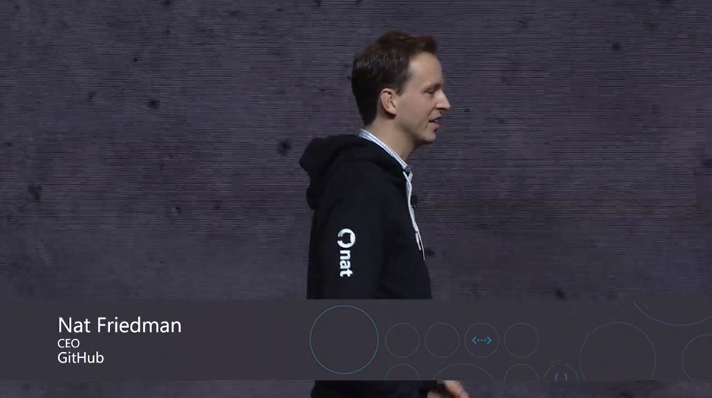 というところでGitHubのCEO、Nat氏が登壇。GitHub Actionsなどの話も。![]()