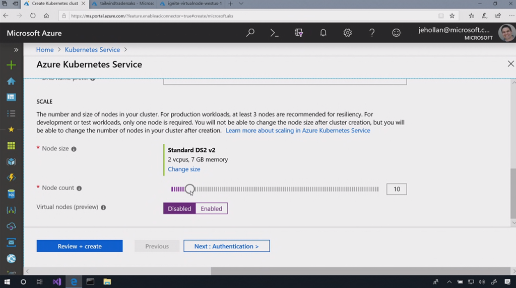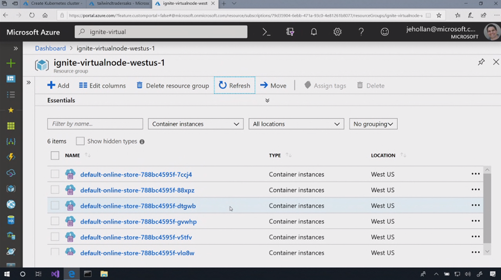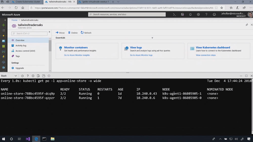 あと今日発表のあったServerlessですね。ノードレスにもできます。さくっとVirtual Node(ACI)が起動して展開できます。![]()
