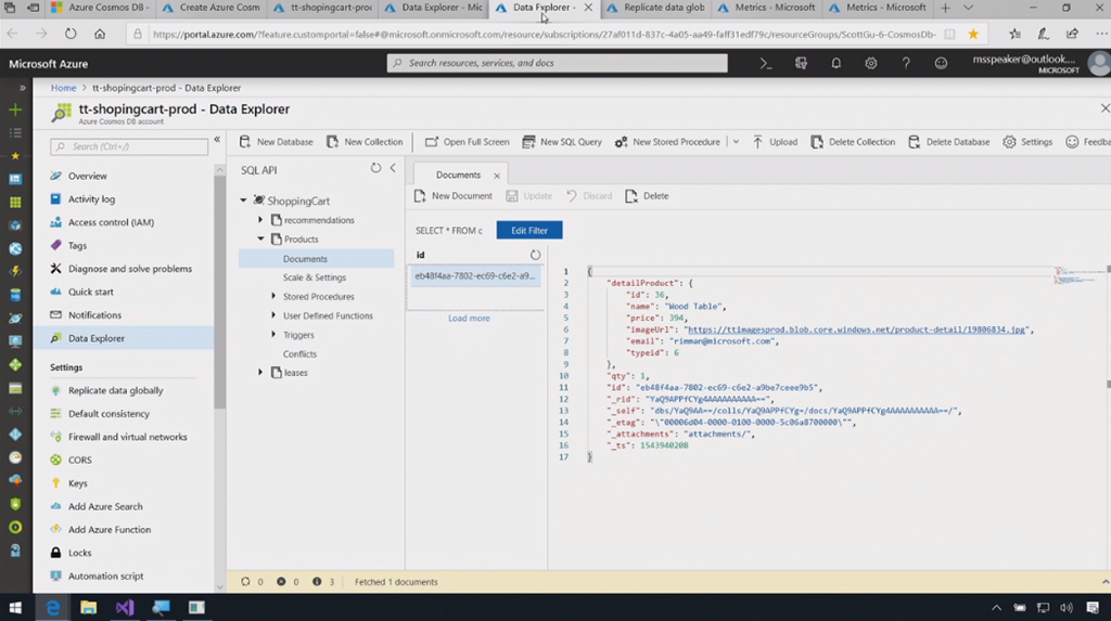 - Azure Cosmos DB Developer experience updates December 2018