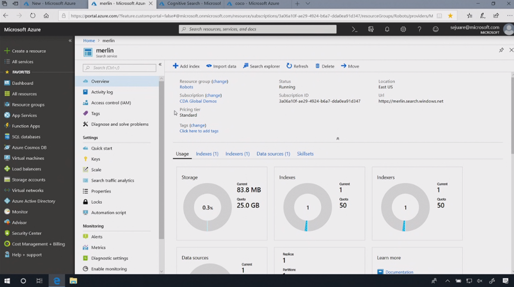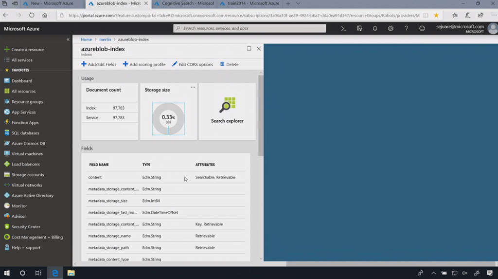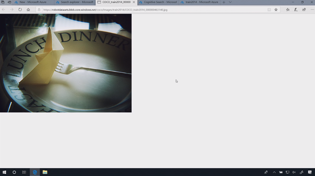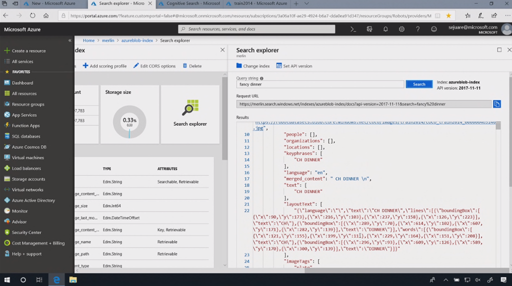 画像をデータソースとしてCognitive Searchを作ります。自動で画像にタグ付けしてIndexを生成。すごく簡単ですね。![]()