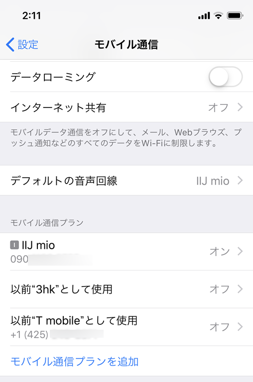 後はそれぞれの国についたときにONにするだけ。(データローミングはOnにしないとうまくいかなかった)