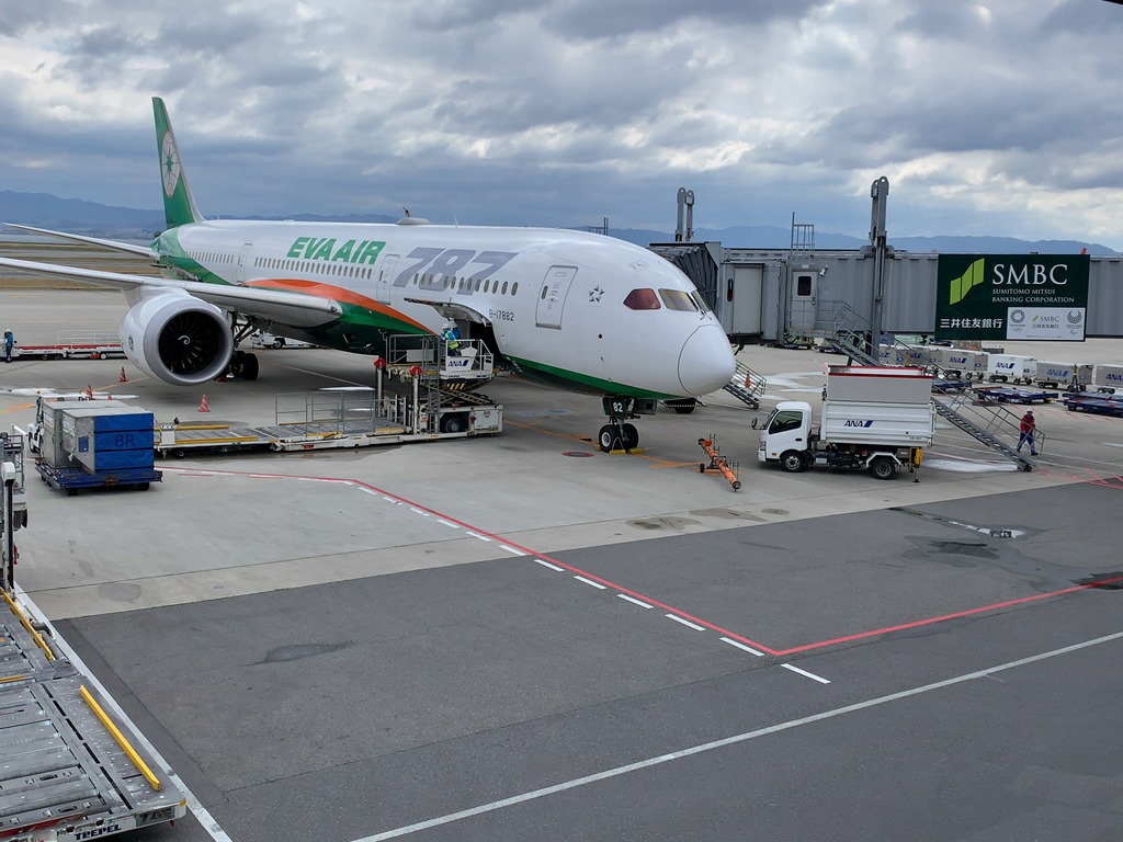 - 関空からまずは台湾の桃園国際空港へ。ハローキティのラッピングぽい事前情報があったんですが、普通の機材でよかった(?)