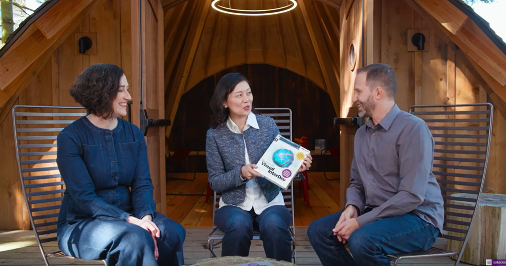 最初はDeveloper DivisionのJulia氏たちから。ツリーハウス内から天気いいし外でやろうぜってことで外で。Visual InterDevをプレゼントしたりちょっとVisual Studioの歴史振り返り小話。![]()