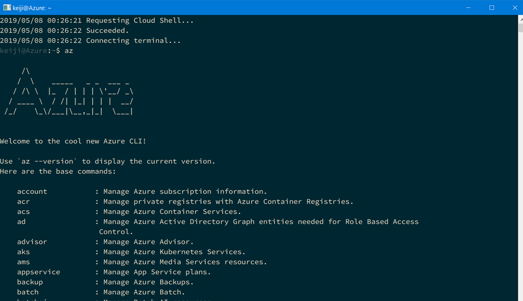 azshellを使うとローカルのコマンドラインやターミナルからCloud Shellにつなぐことができます。いちいち shell.azure.com や Azure Portalに行かなくてもOK。(Visual Studio Codeに似たような機能を拡張でいれられますけど)