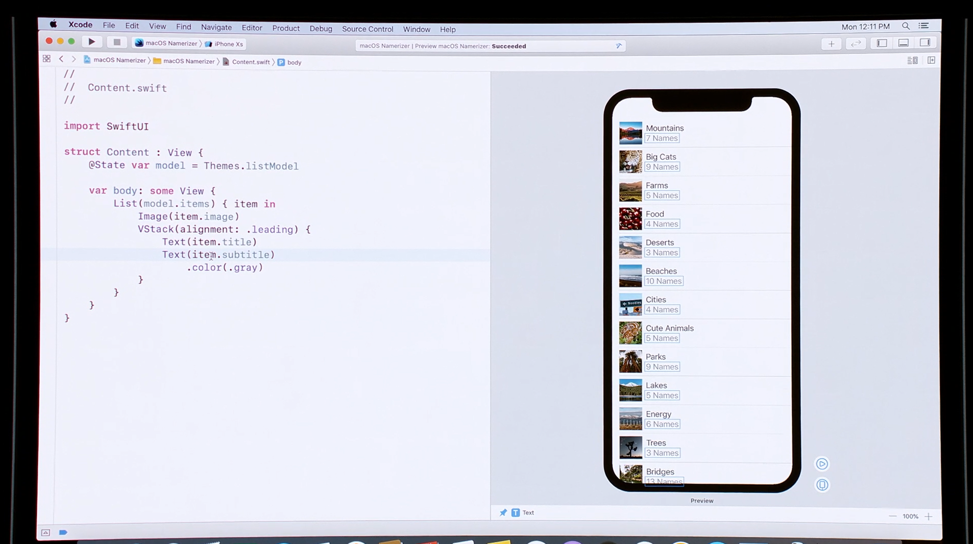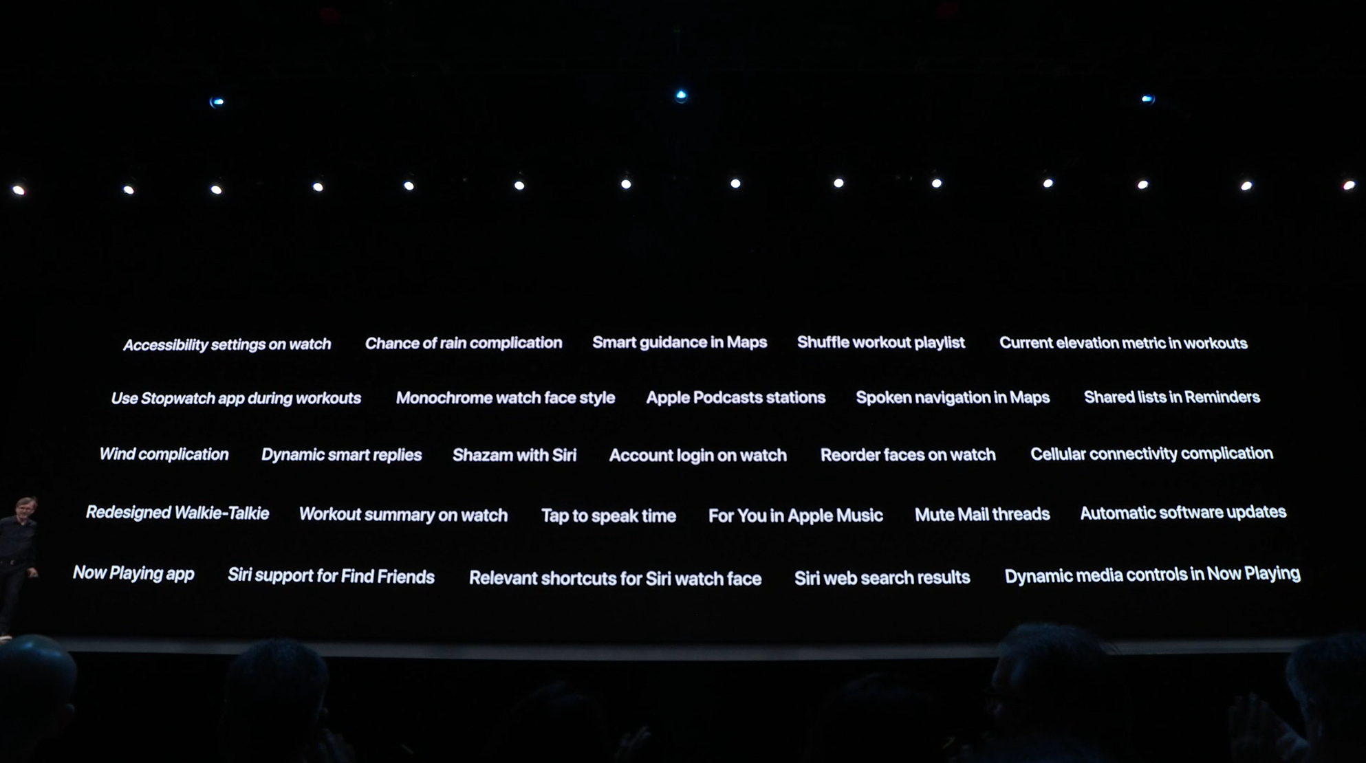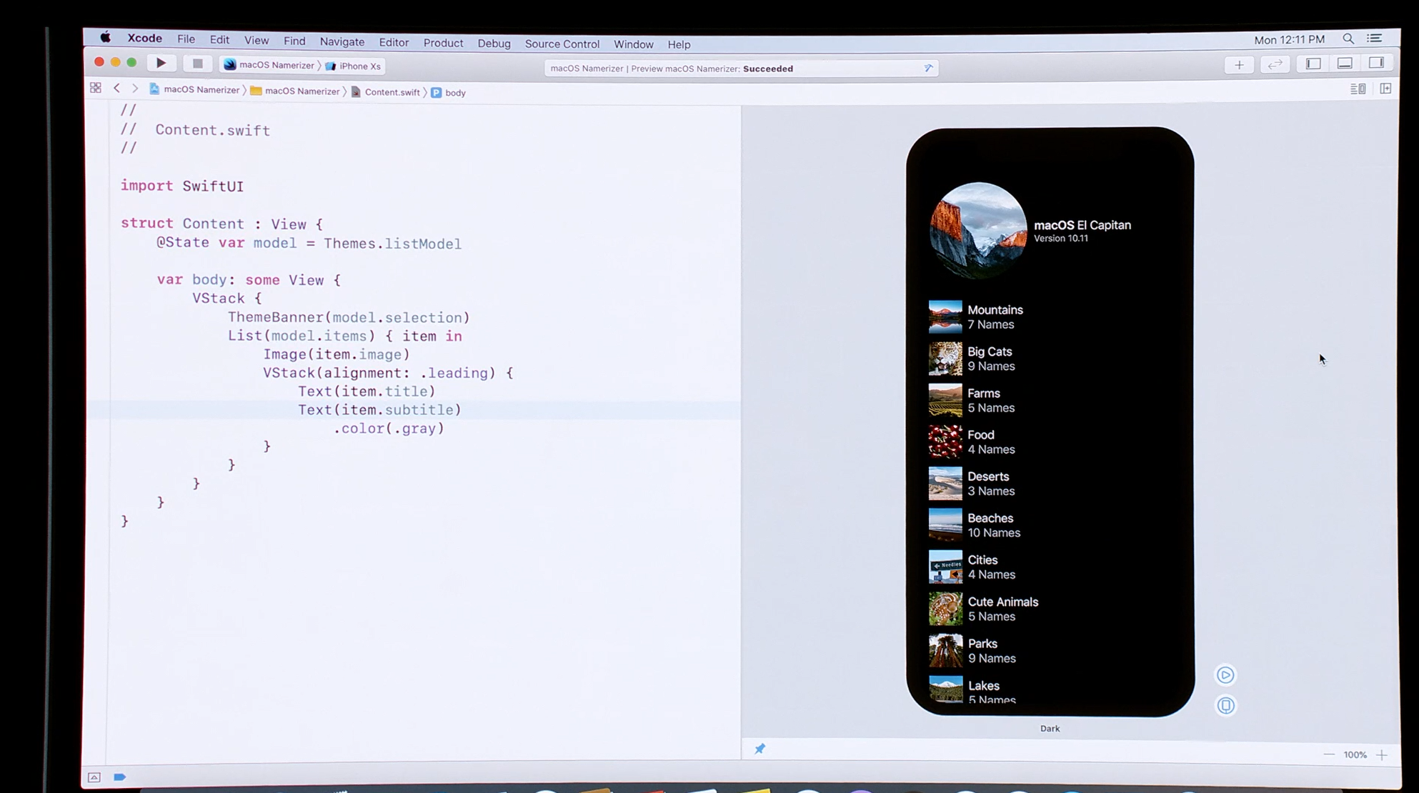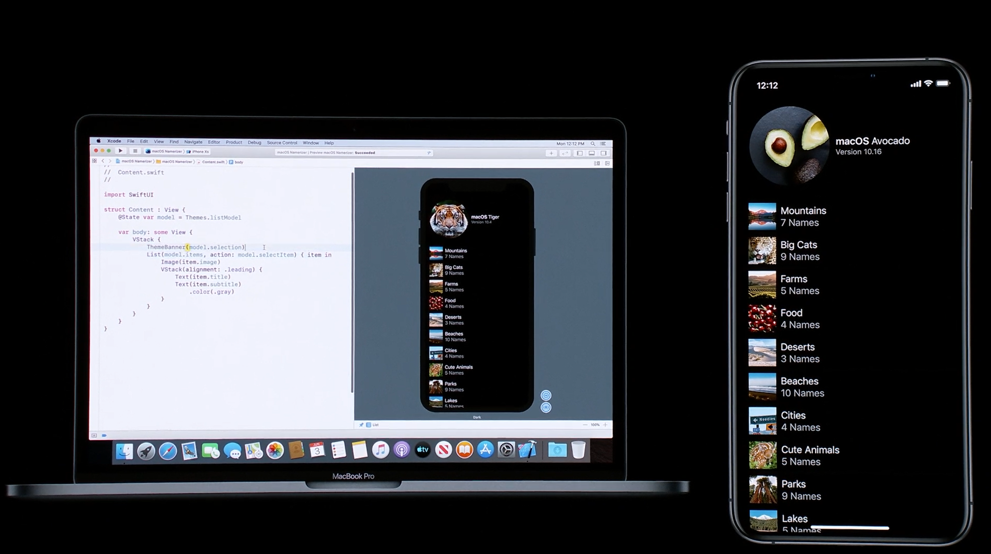 最後はSwift。Swift UIがアナウンス。すごく長ったらしい記述が必要だったリストが数行で。エディタ上で開発しながら操作して変更みれるしそのまま実機でもOK。ダークモードなどにも対応。ARKitなどもOK。Apple Watchも。全部Swiftで。![]()