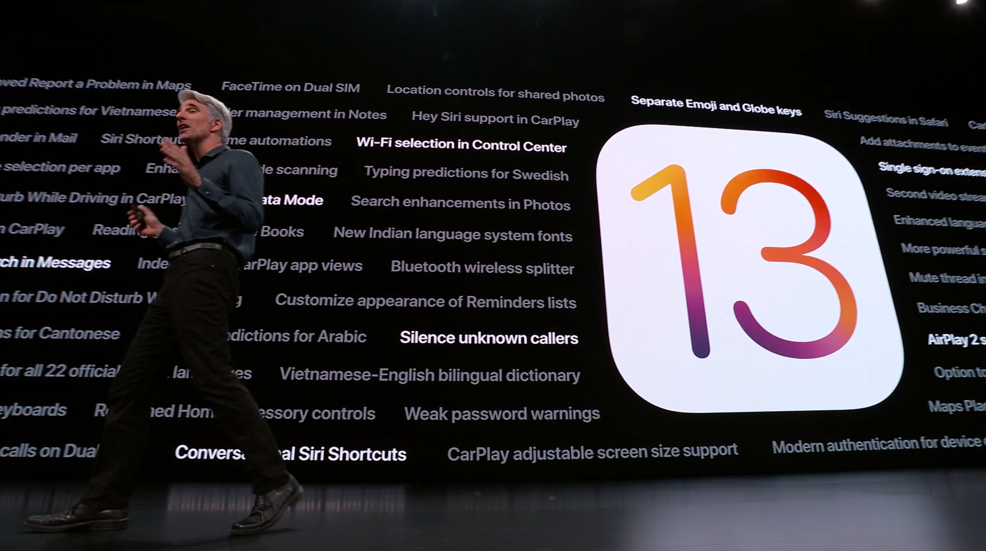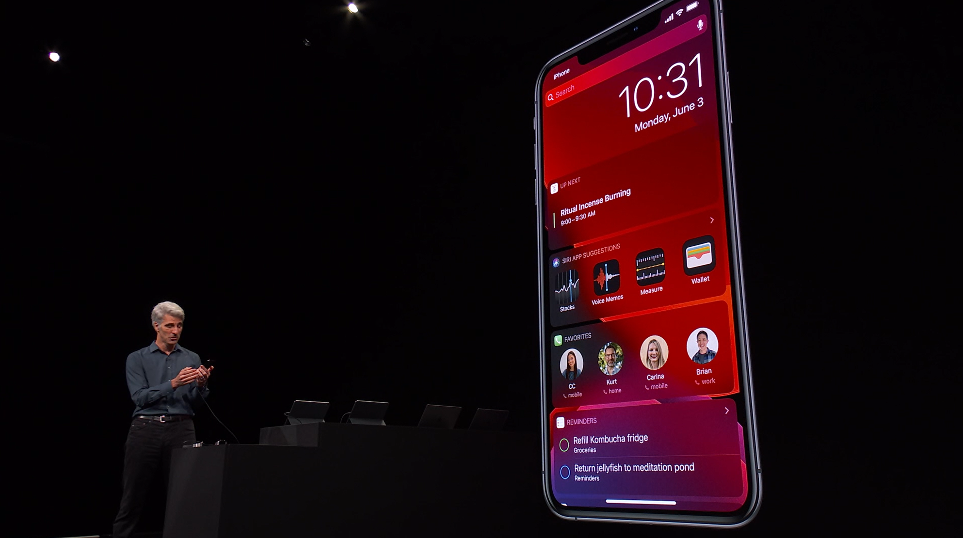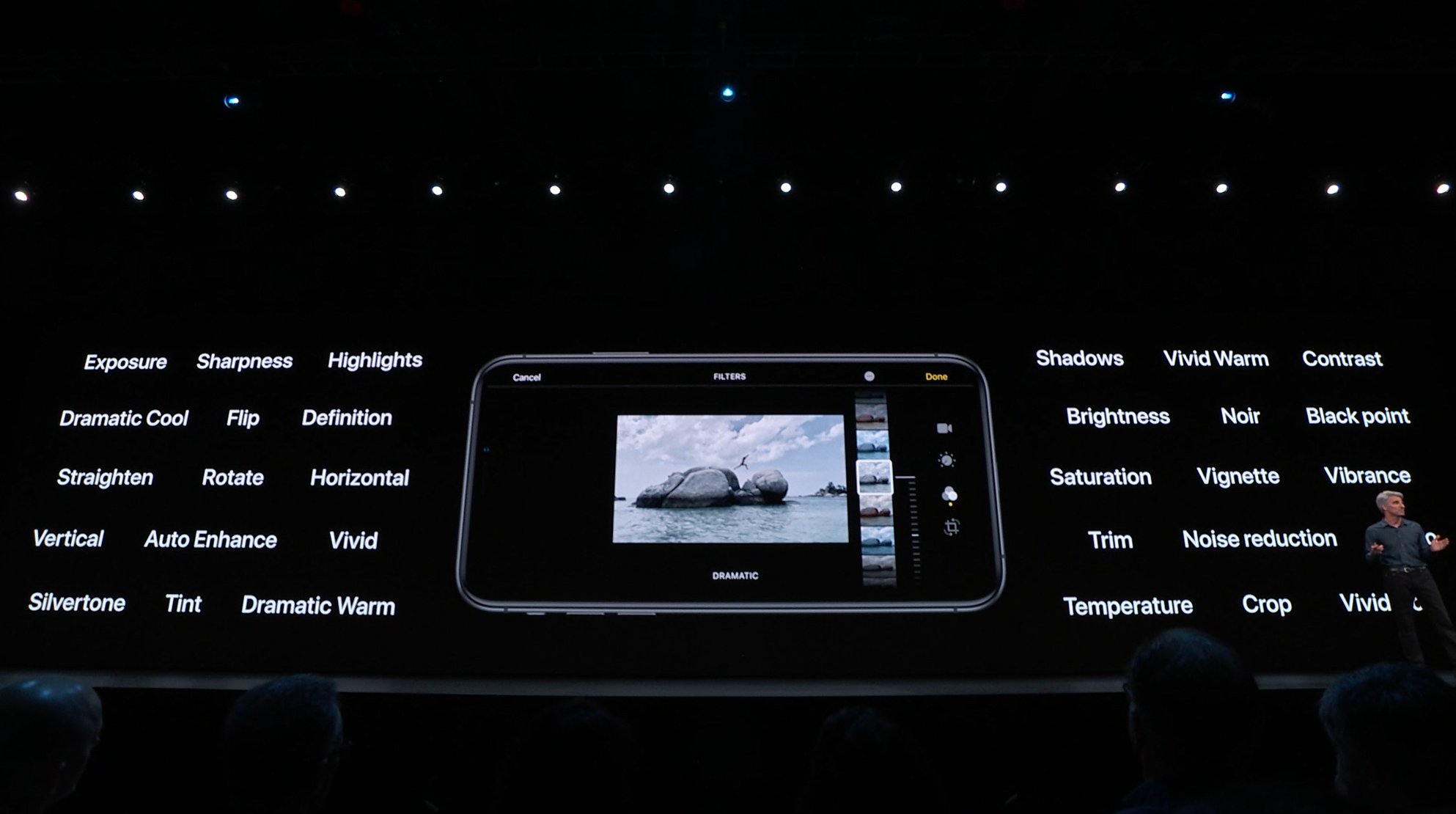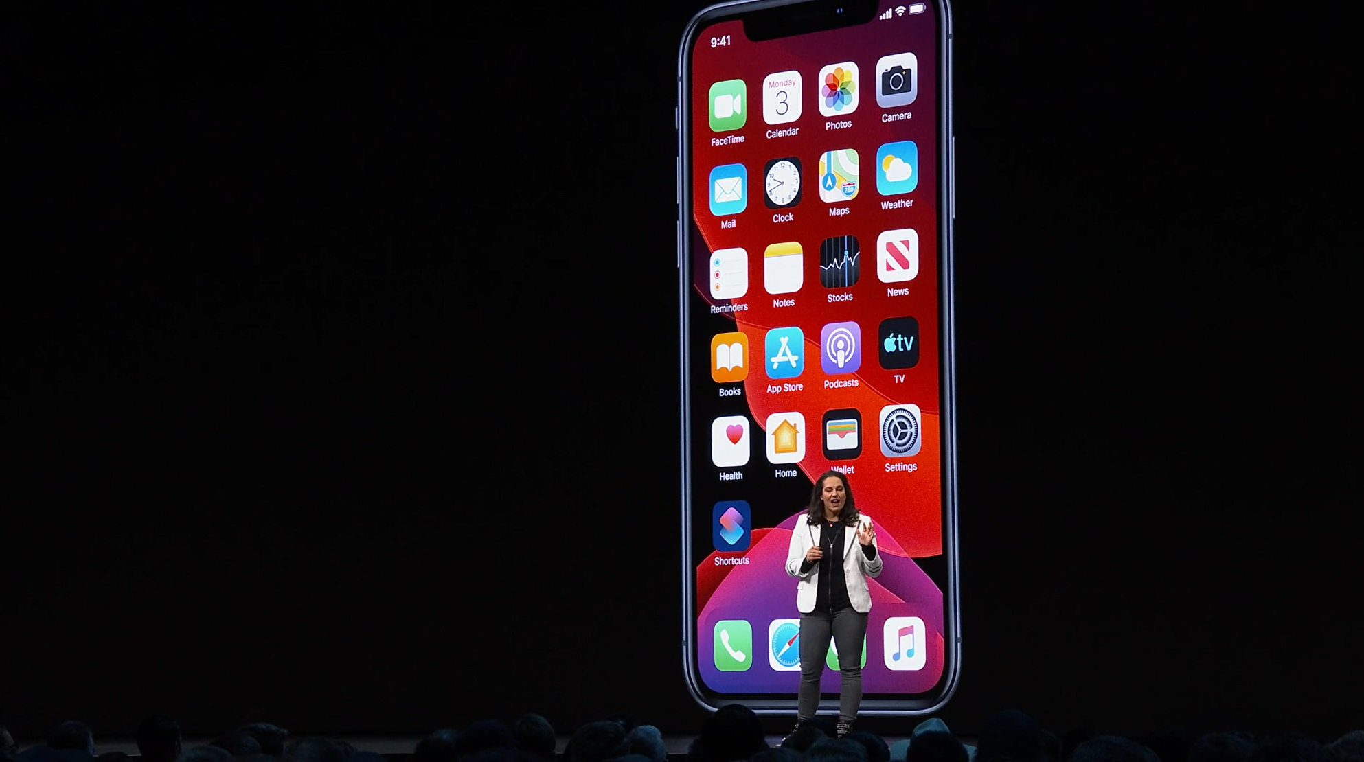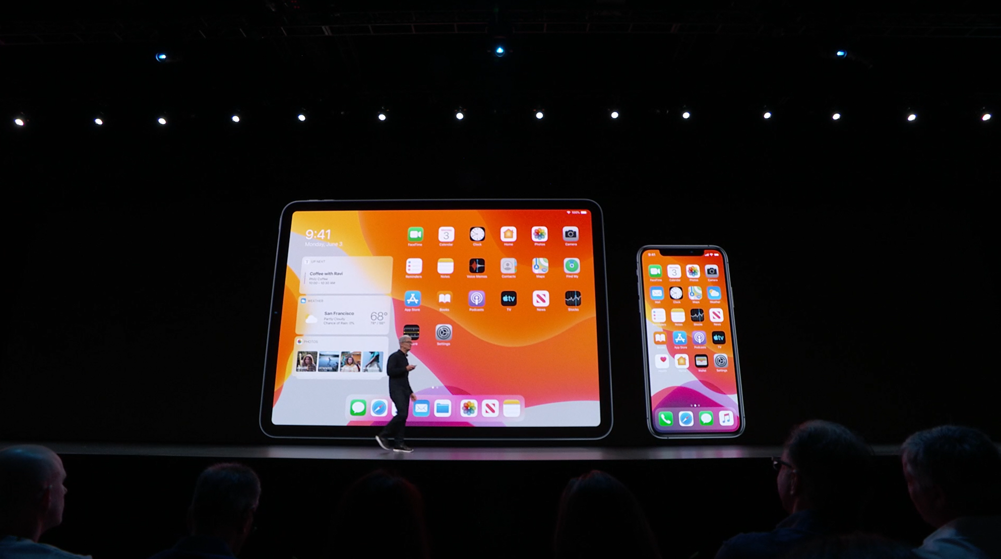 次はiOS。予想通りiOS13。Face IDを使ったアンロックが30%速くなるとかアプリの起動が2倍速くなるとかなんとか。![]()