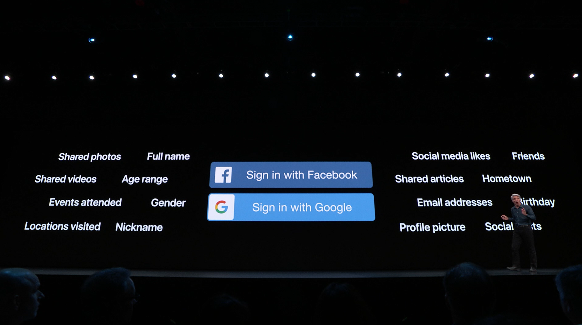 プライバシーとかセキュリティ周りは結構どのパートでもいってましたね。独自技術感がすごい。あとソーシャルサインインでApple IDが使えるように。それから提供する情報の選択やランダムIDを生成して渡せるぽい。![]()