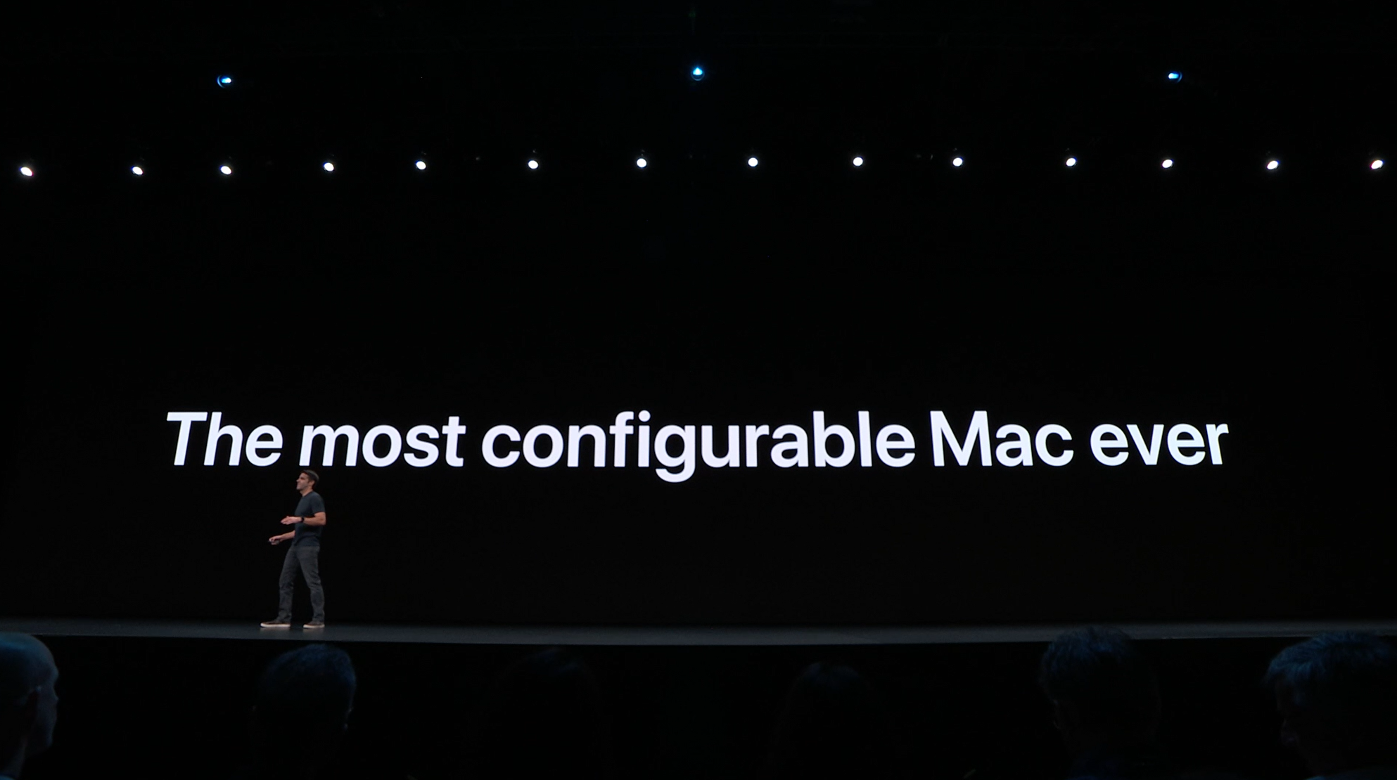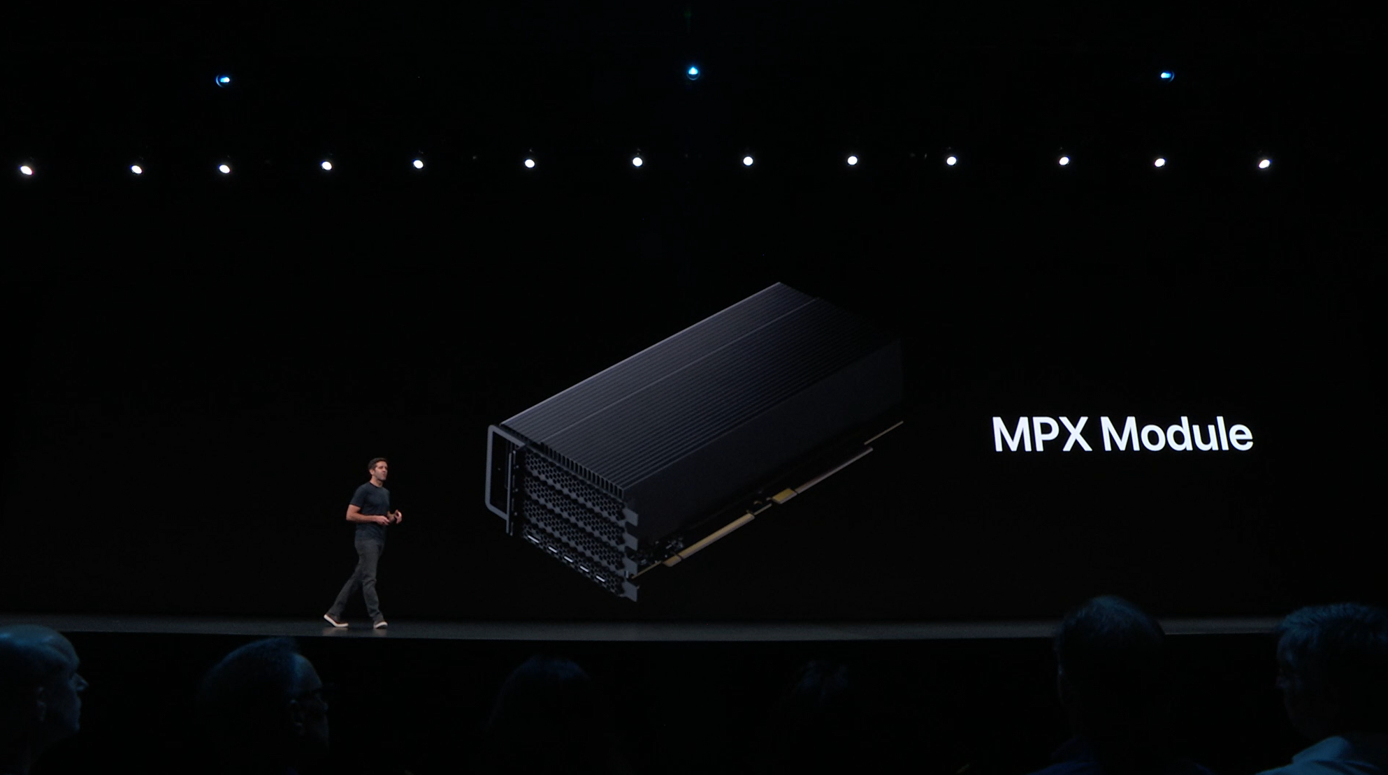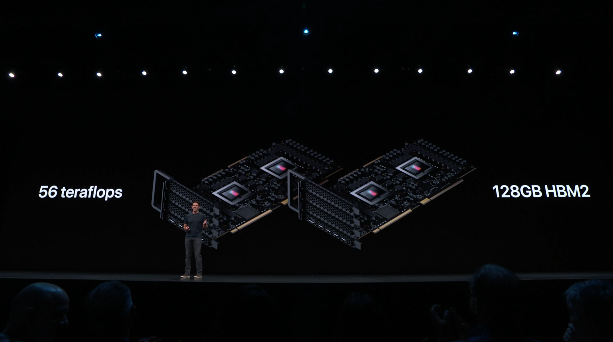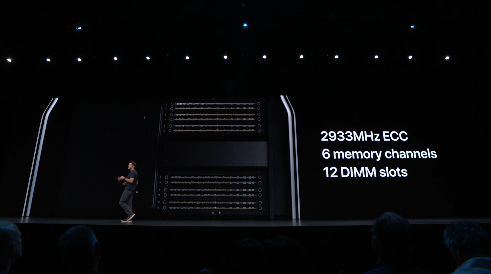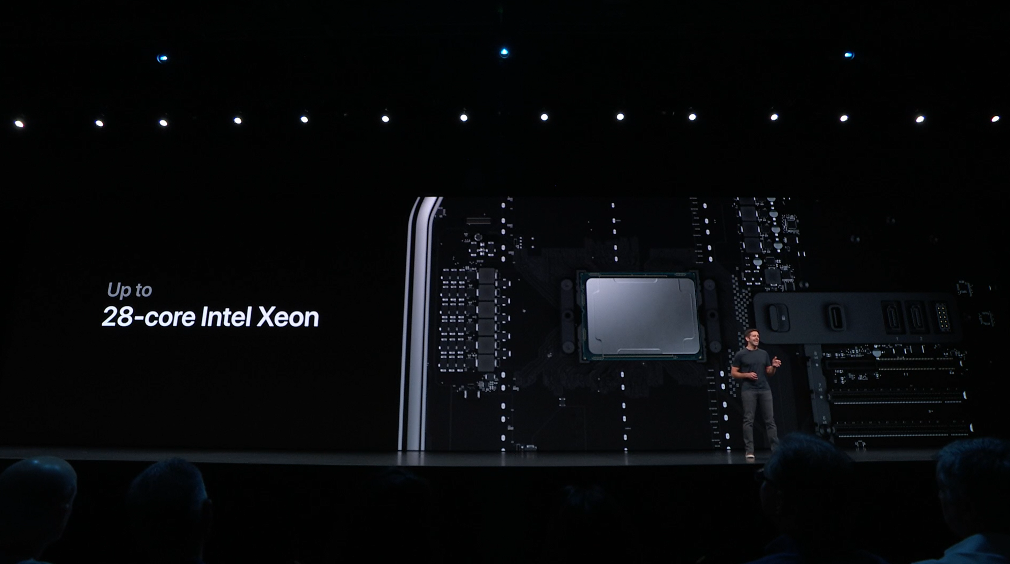 次はMac。新しいMac Proの発表。タワー型ですね。モジュラー形式になっててカスタマイズしやすいみたい。CPUは28コアなXeon。メモリは12スロットなDIMMで最大1.5TB、PCIスロットも豊富。10GbE。![]()