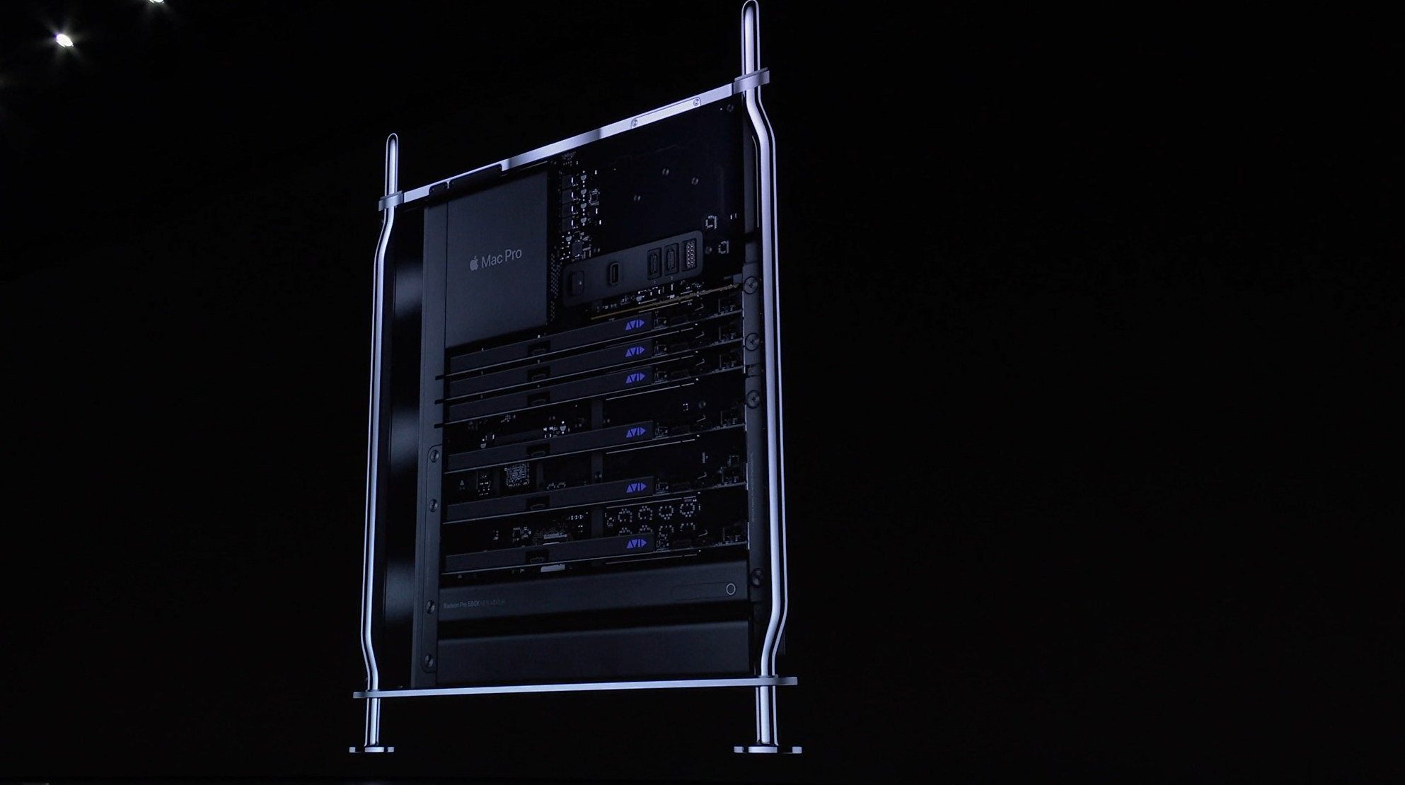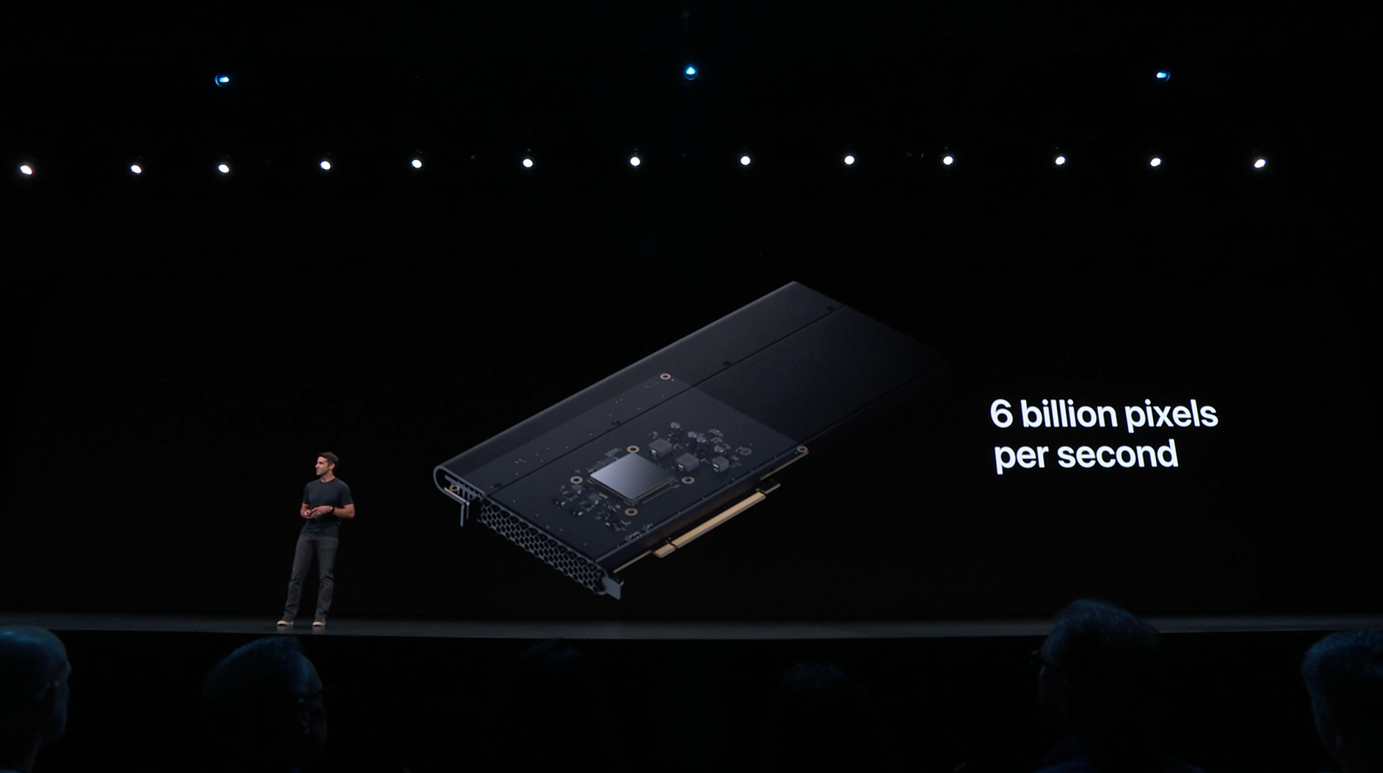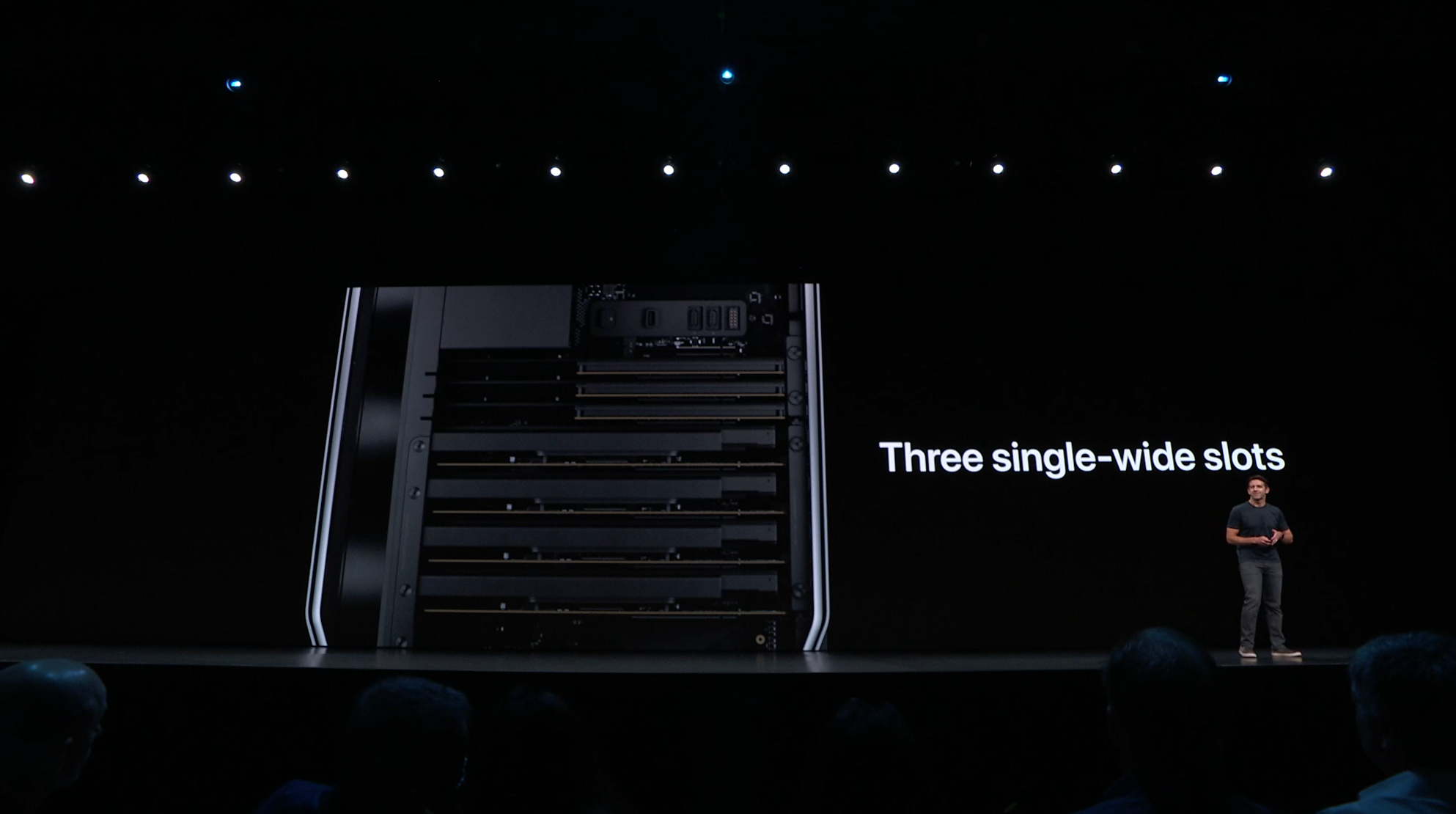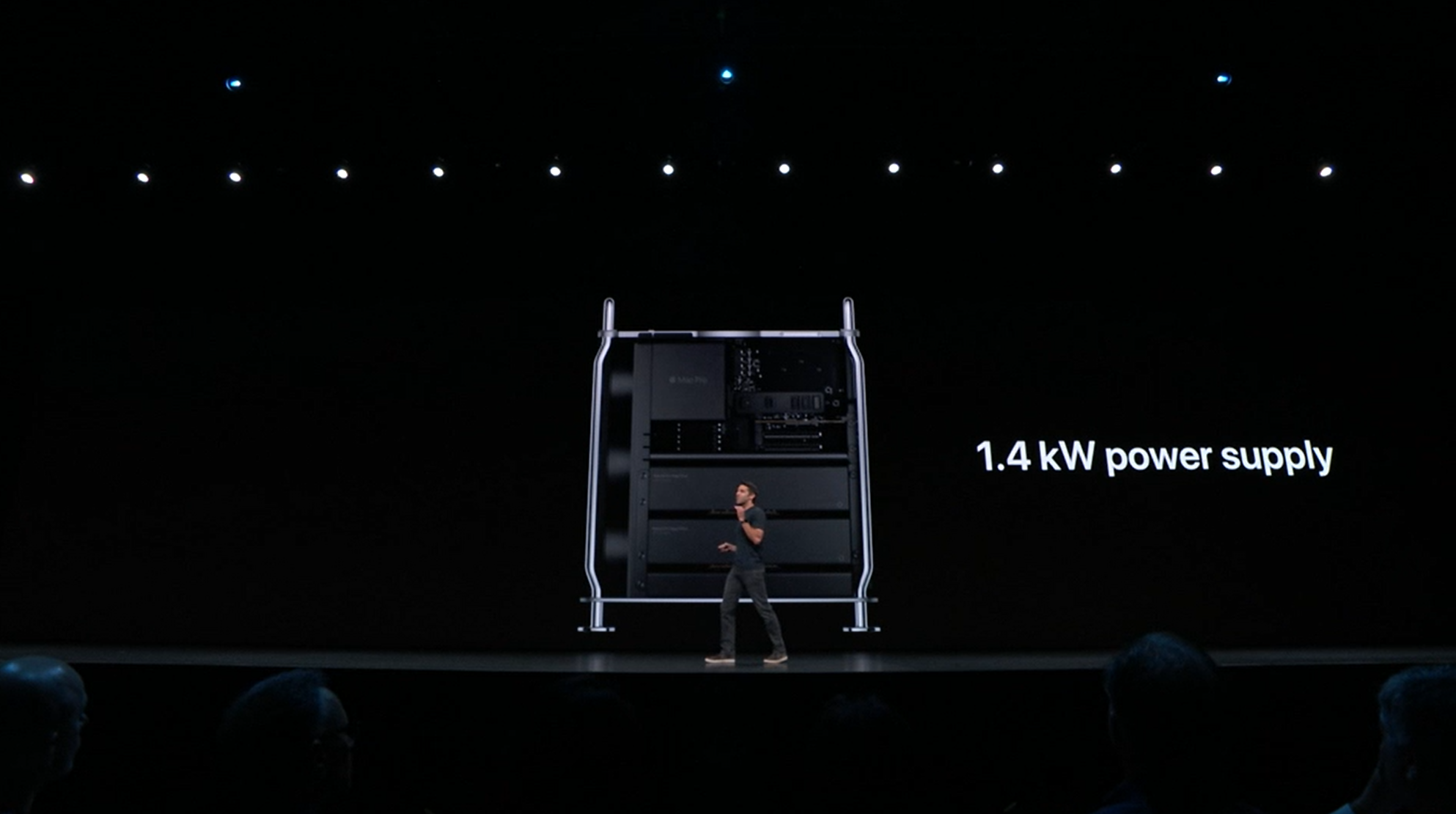 次はMac。新しいMac Proの発表。タワー型ですね。モジュラー形式になっててカスタマイズしやすいみたい。CPUは28コアなXeon。メモリは12スロットなDIMMで最大1.5TB、PCIスロットも豊富。10GbE。![]()