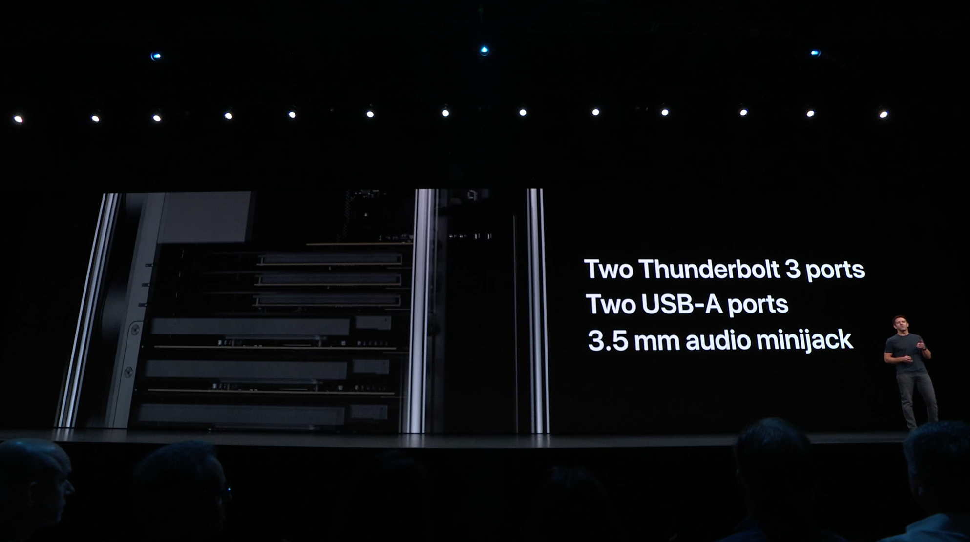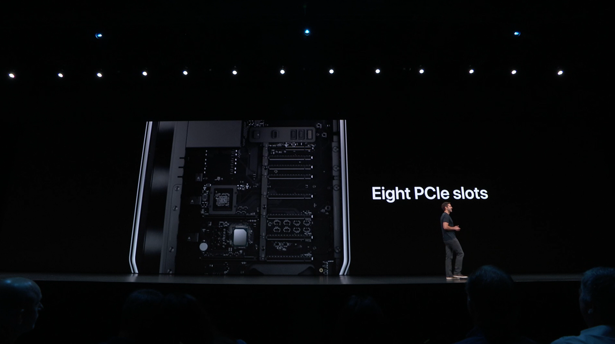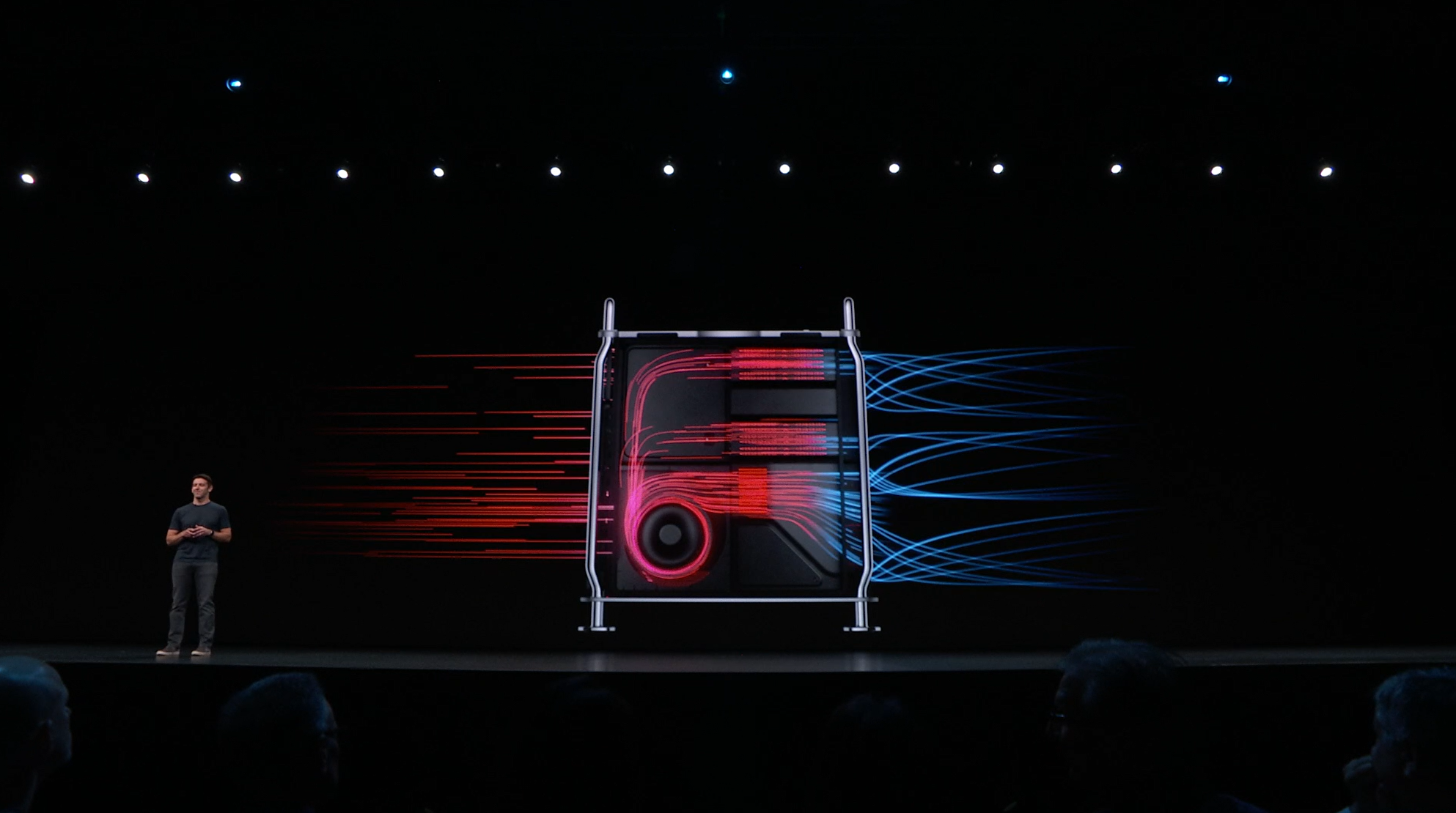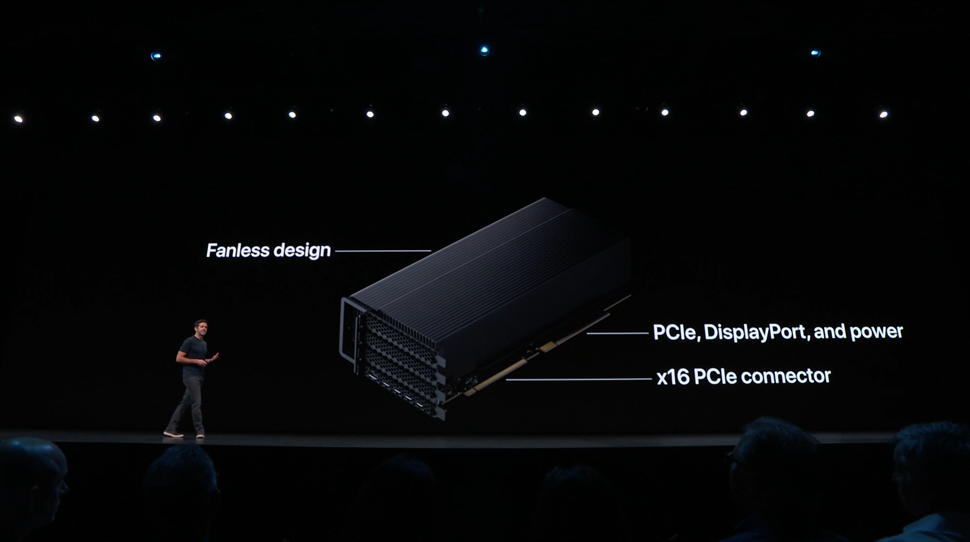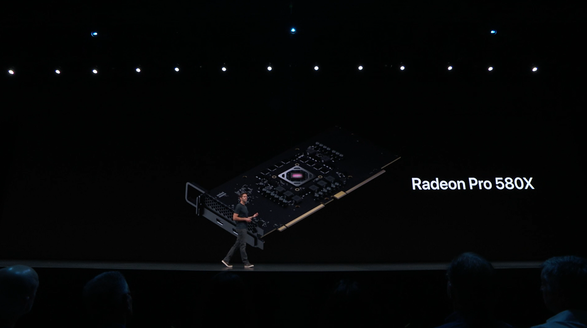 次はMac。新しいMac Proの発表。タワー型ですね。モジュラー形式になっててカスタマイズしやすいみたい。CPUは28コアなXeon。メモリは12スロットなDIMMで最大1.5TB、PCIスロットも豊富。10GbE。![]()