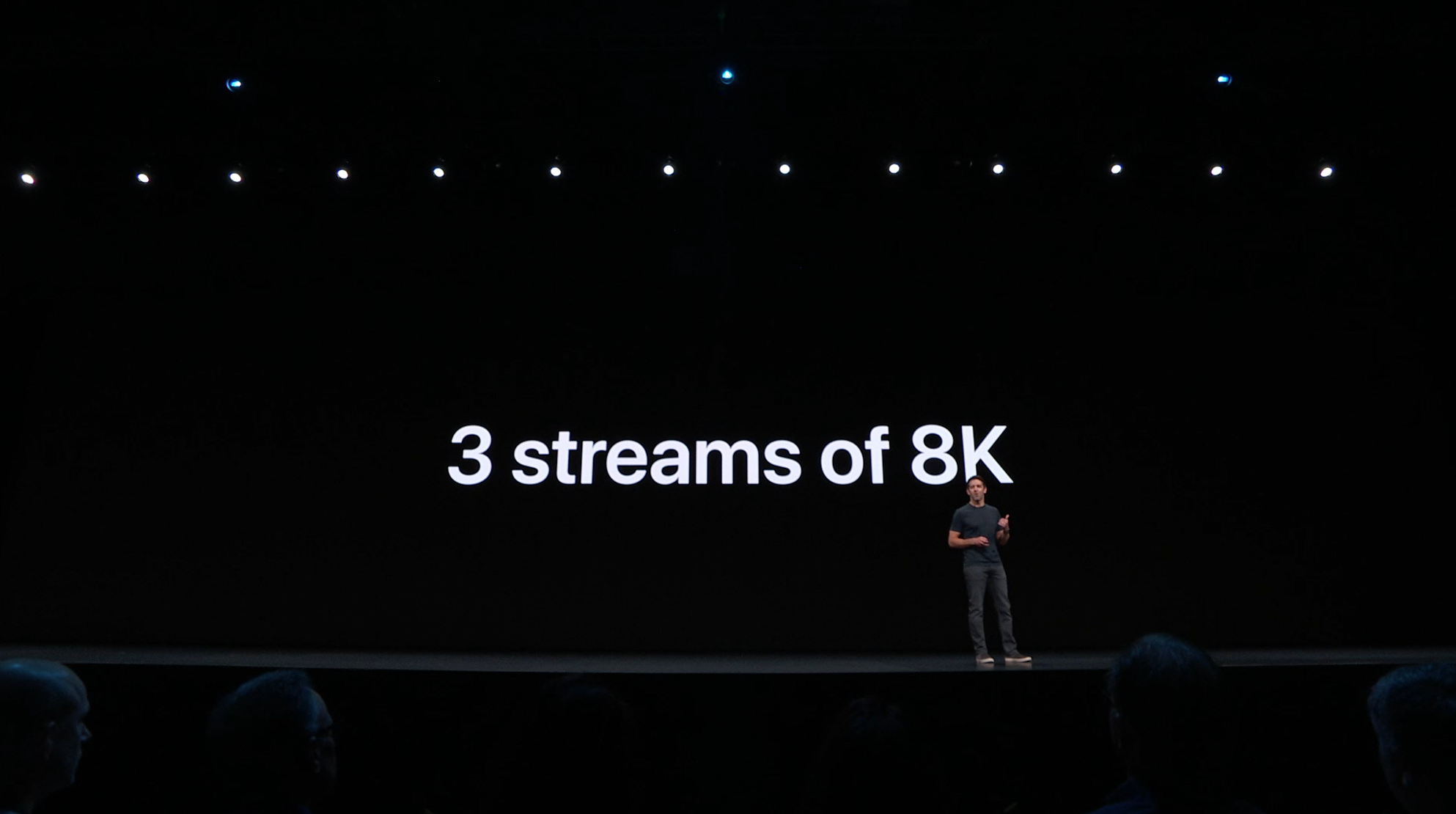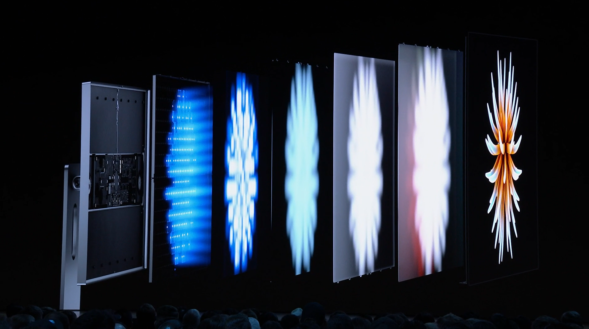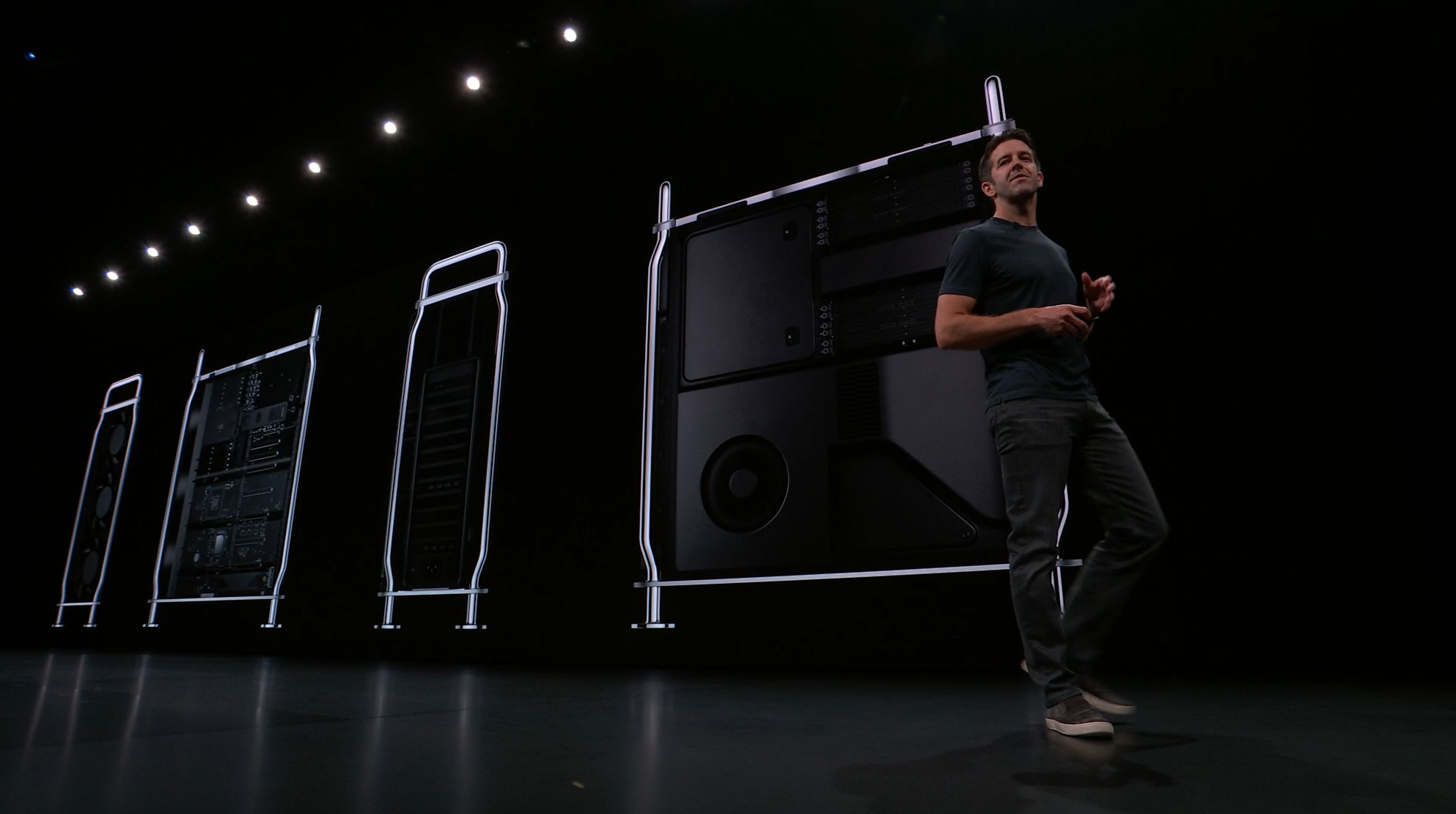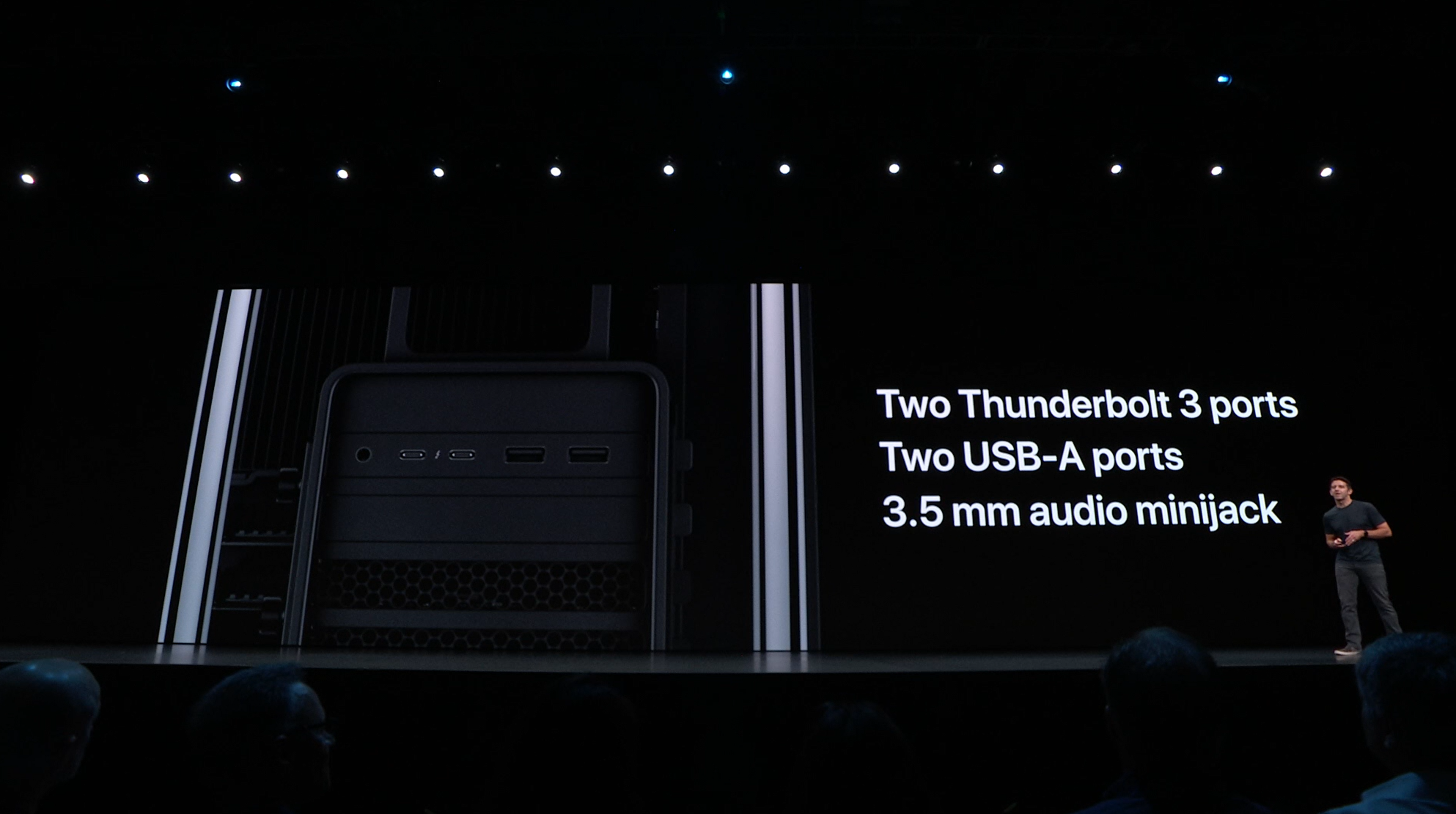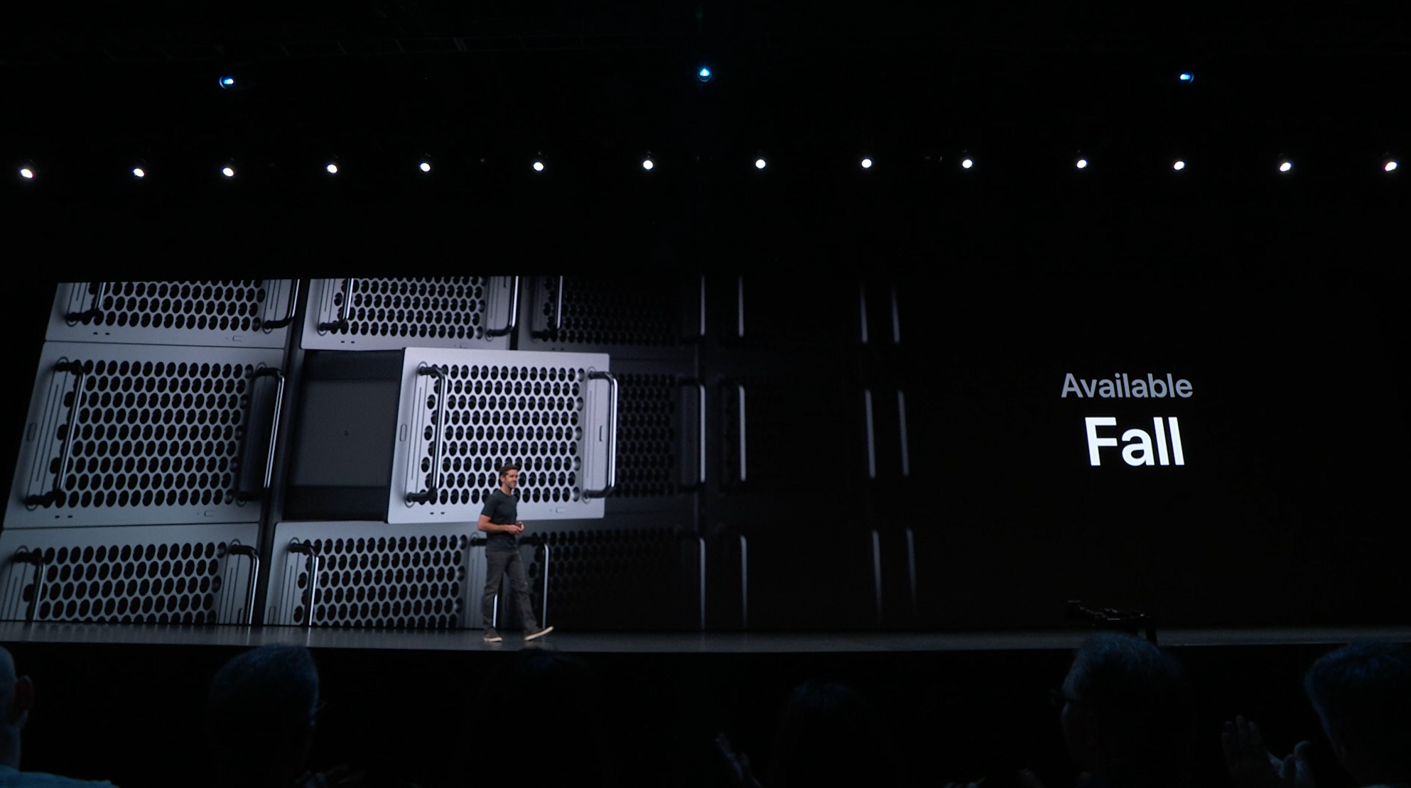 次はMac。新しいMac Proの発表。タワー型ですね。モジュラー形式になっててカスタマイズしやすいみたい。CPUは28コアなXeon。メモリは12スロットなDIMMで最大1.5TB、PCIスロットも豊富。10GbE。![]()