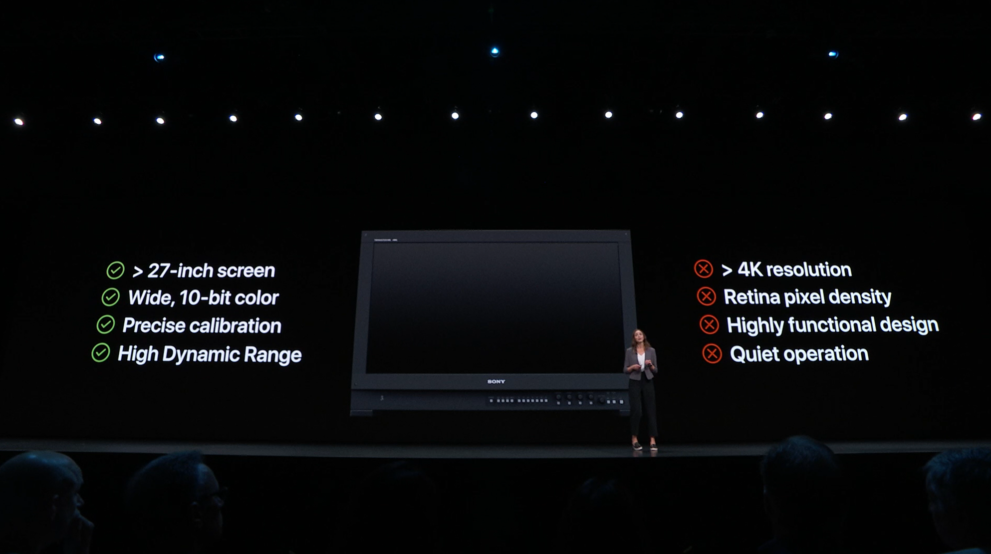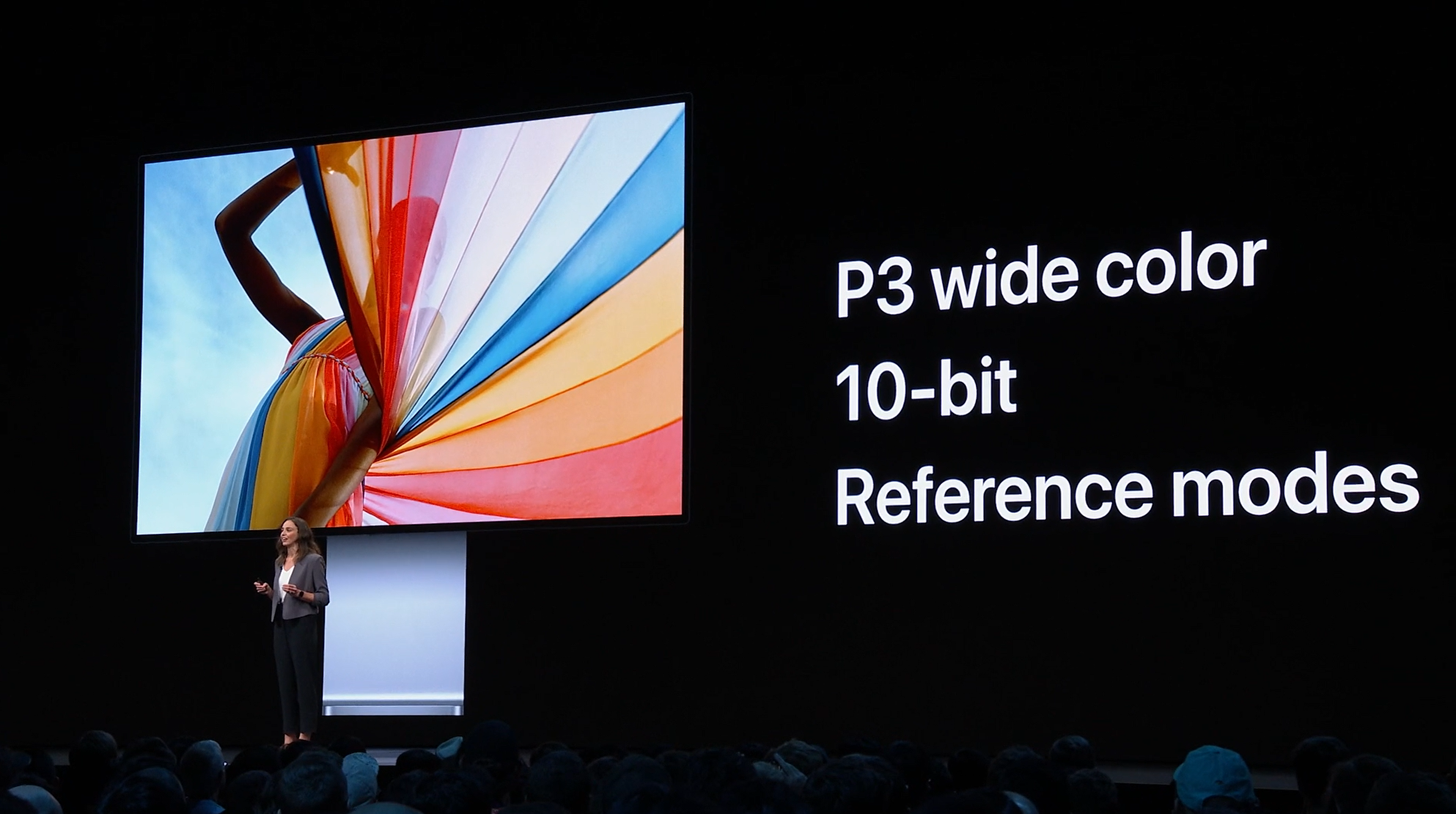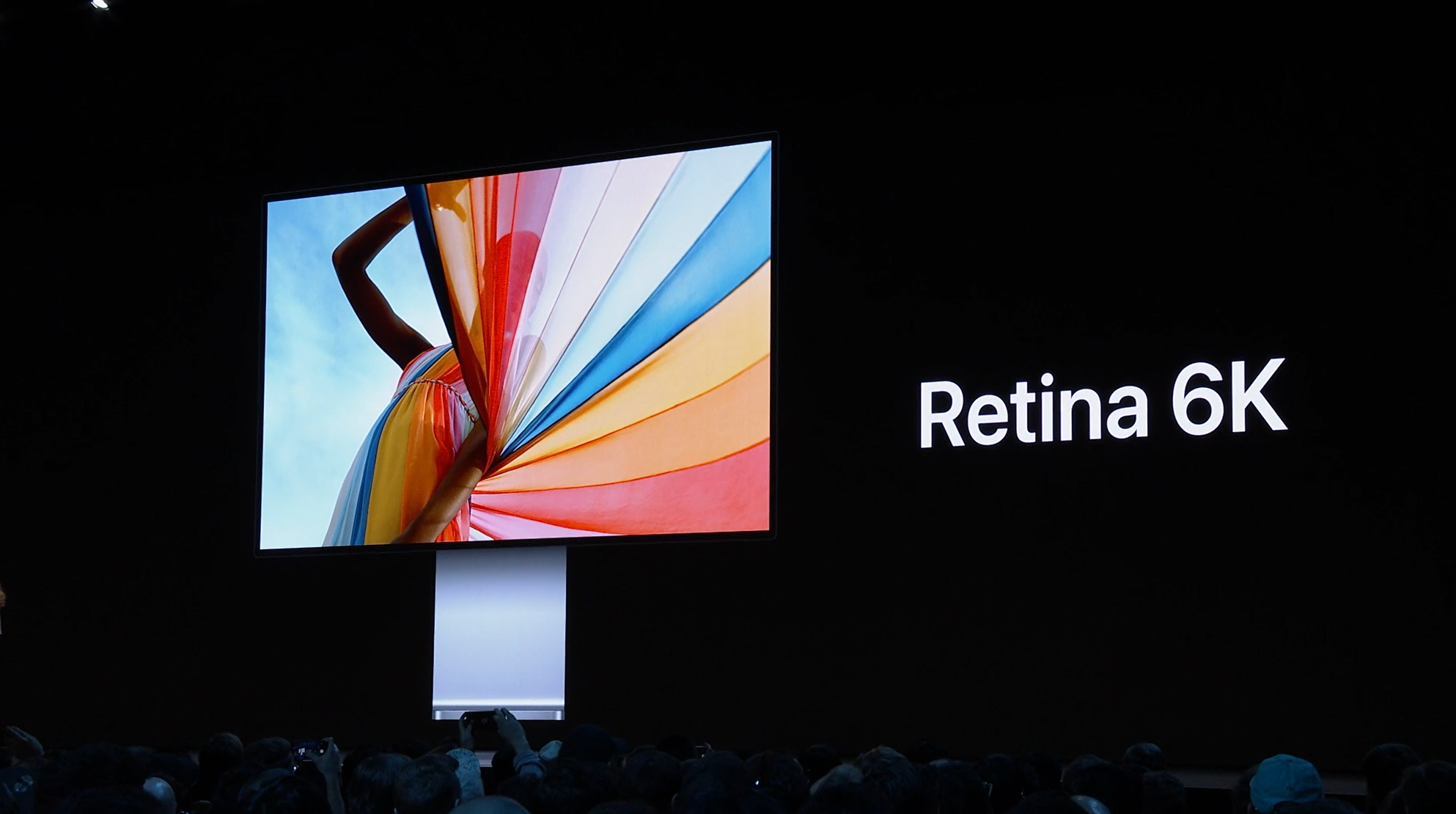 次は気になるモニターのほう。Retina 6k。Pro Display XDR。6枚つなげられるぽい。ポートレート(縦)もOK、VESAマウント対応。![]()