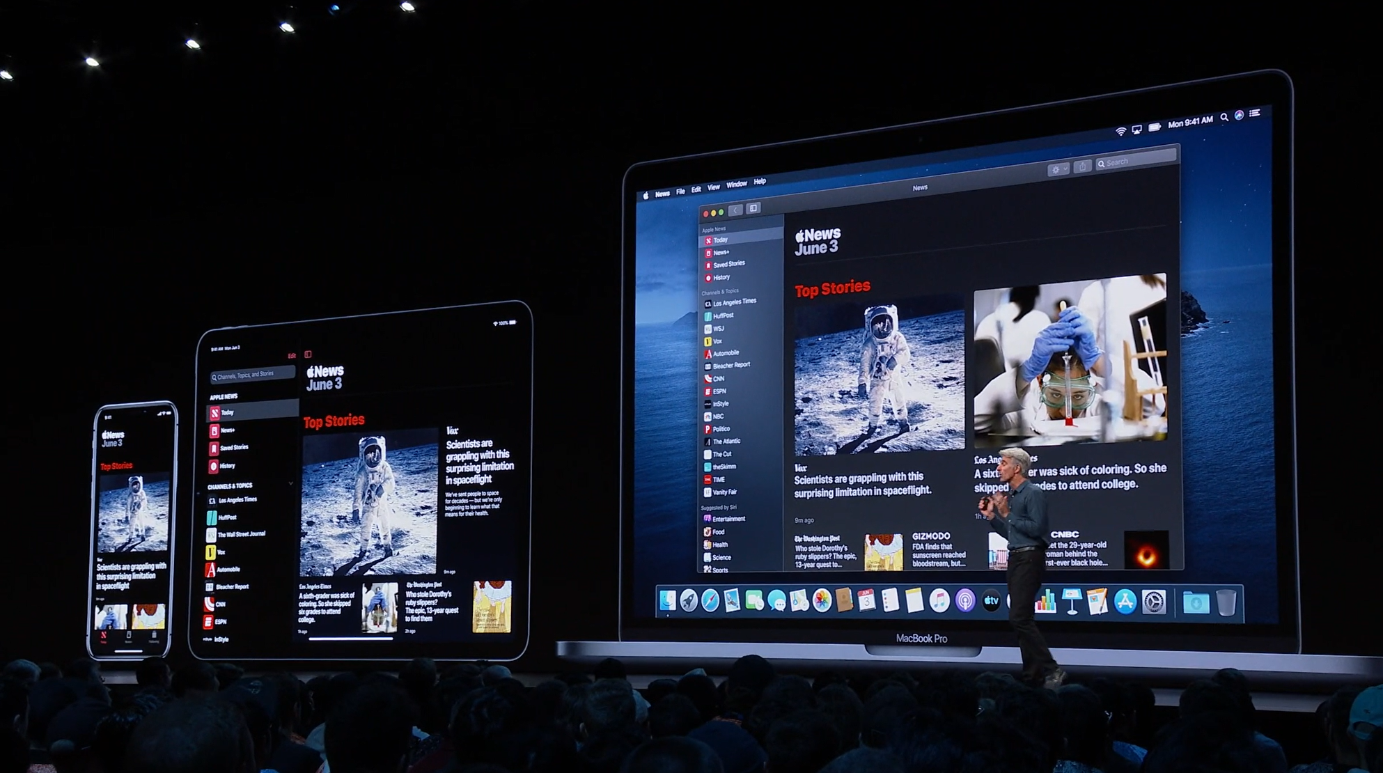 次はmacOS。新しいmacOSはCatalina。最初はiTunesの自虐ネタ?から。iTunes、podcast、appleTVにわかれるそうです。![]()