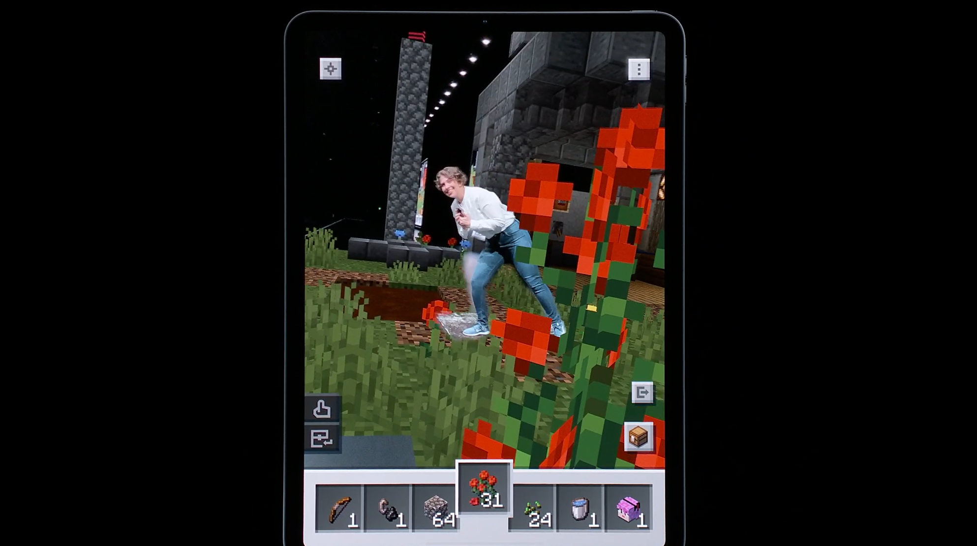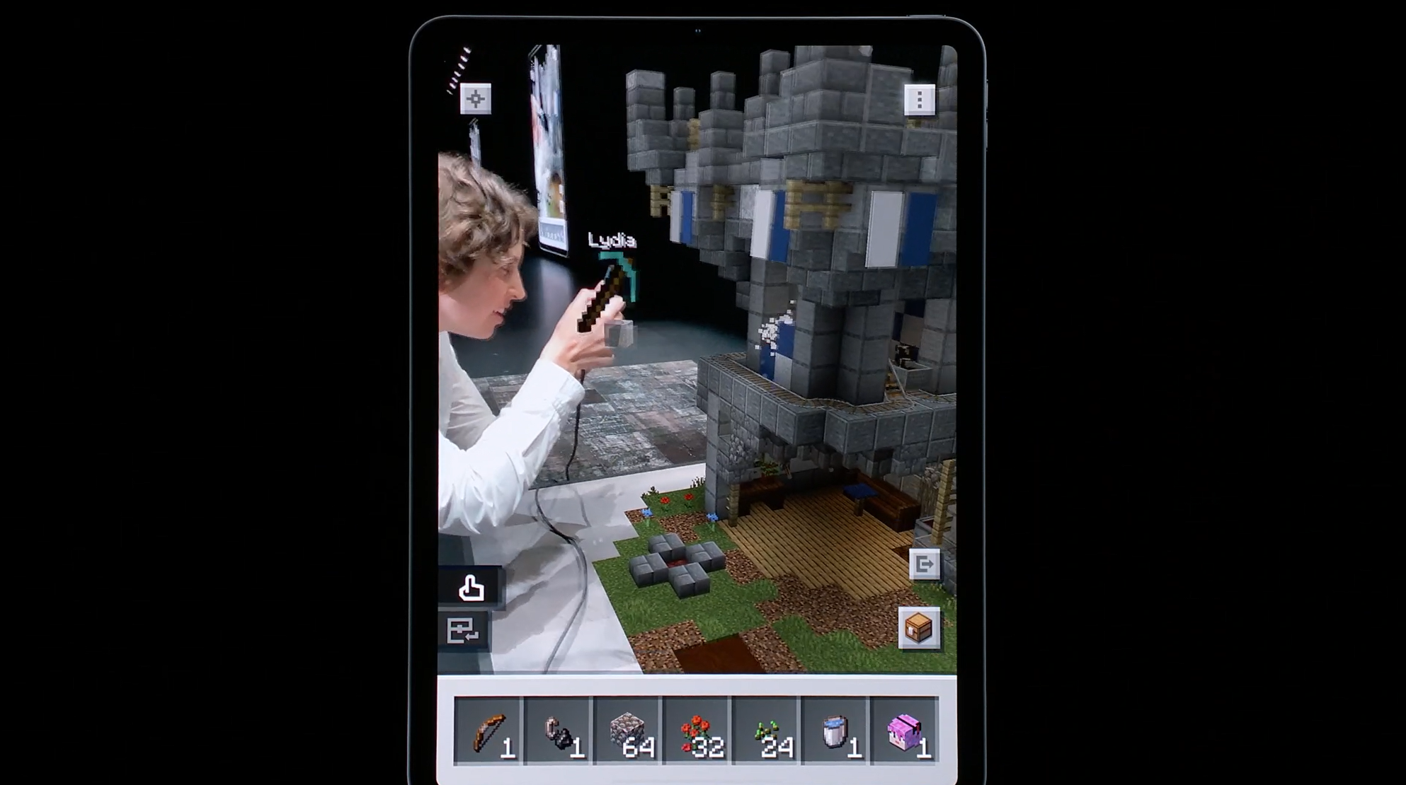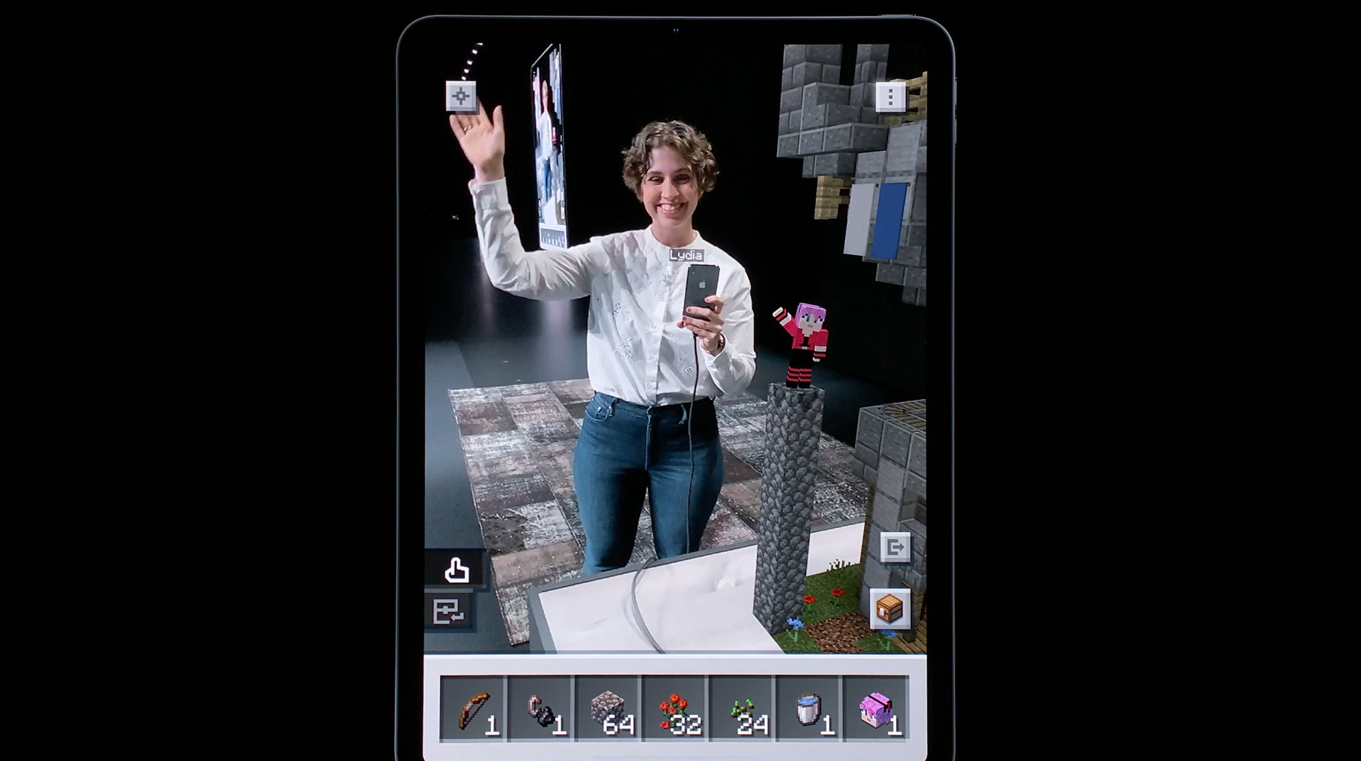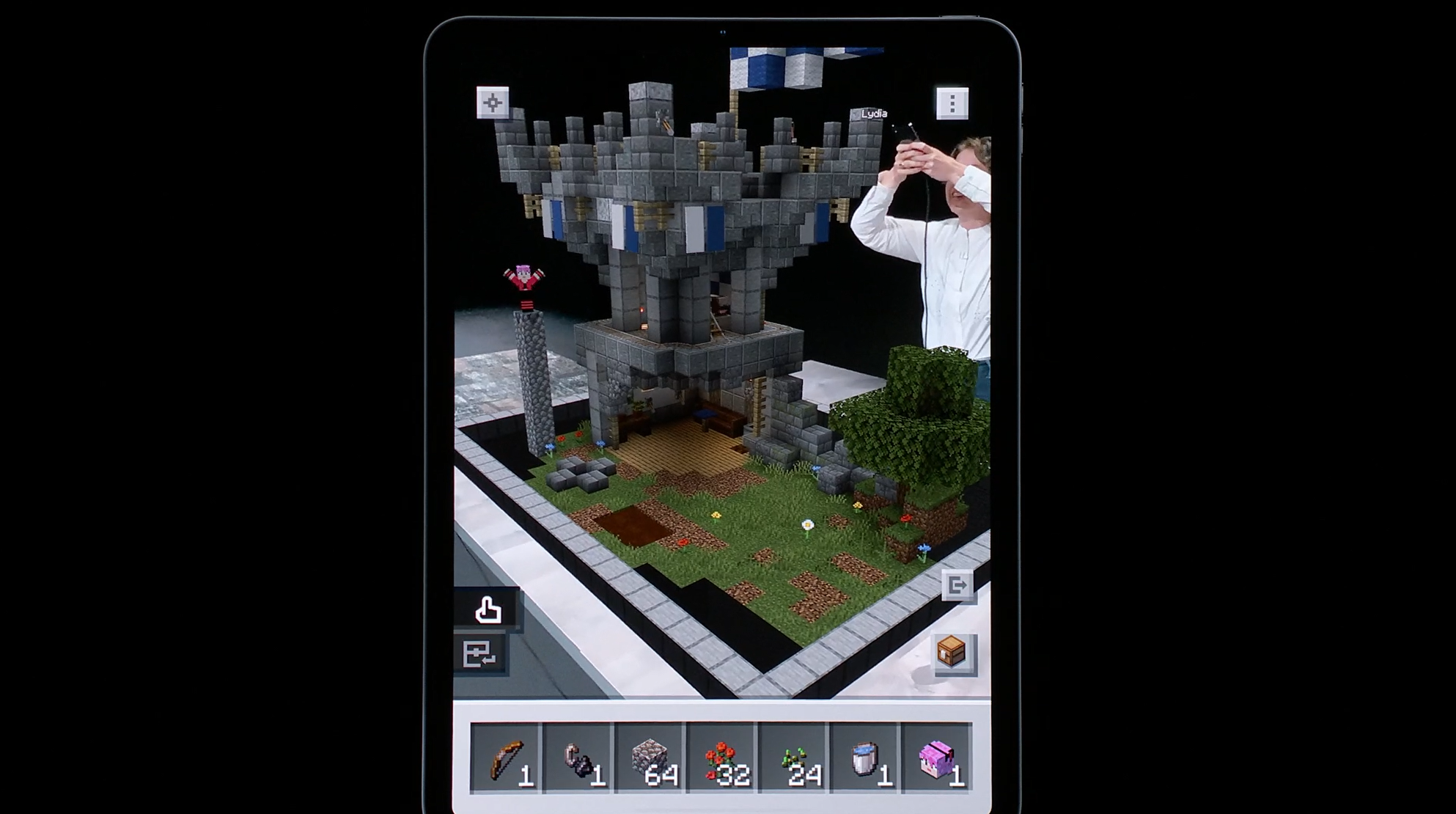 デモはMOJANGから。MinecraftのARのやつですね。テーブルの上でARで建築。モーションキャプチャーもしてるみたいでプレイヤーと連動してます。![]()