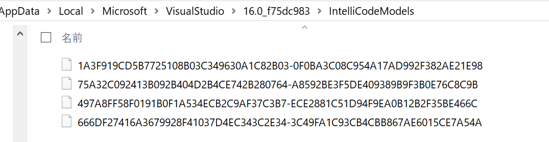 C:\Users\xxxxx\AppData\Local\Microsoft\VisualStudio\16.0_xxxxx\IntelliCodeModels