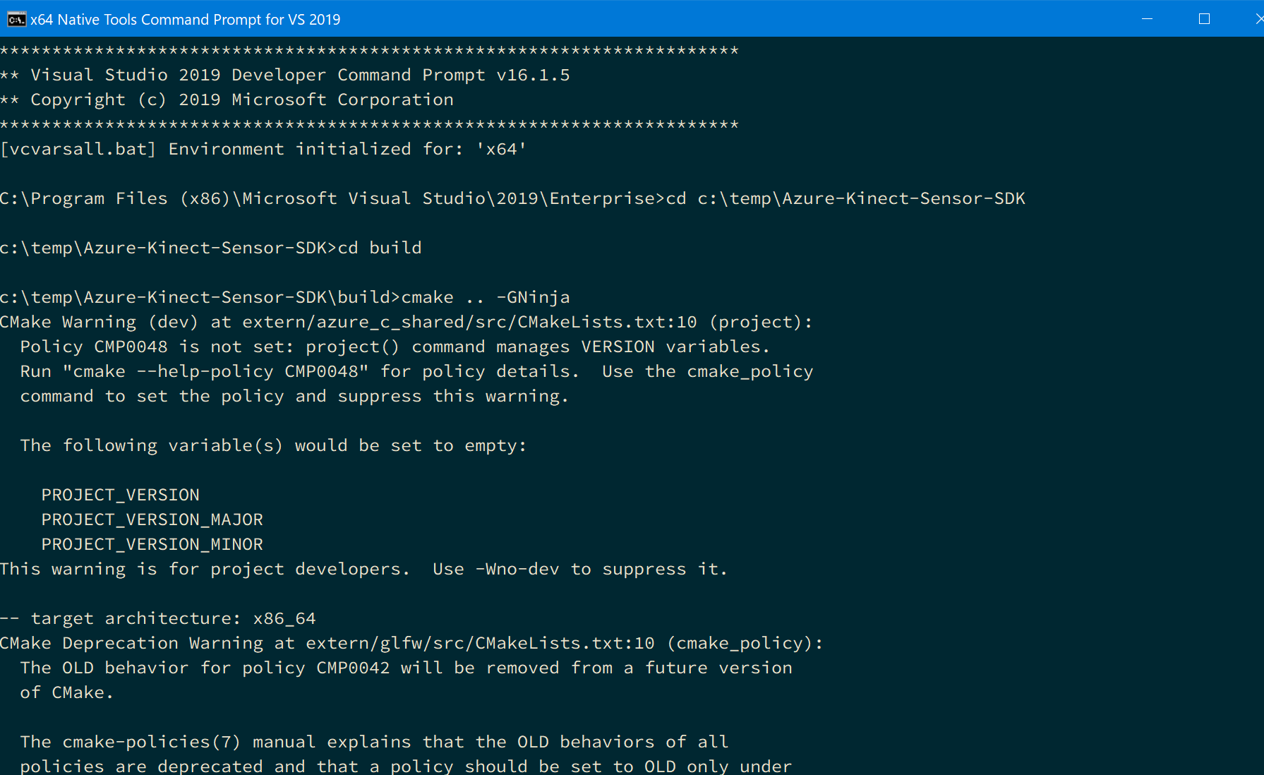c:\temp\Azure-Kinect-Sensor-SDK\build>cmake .. -GNinja