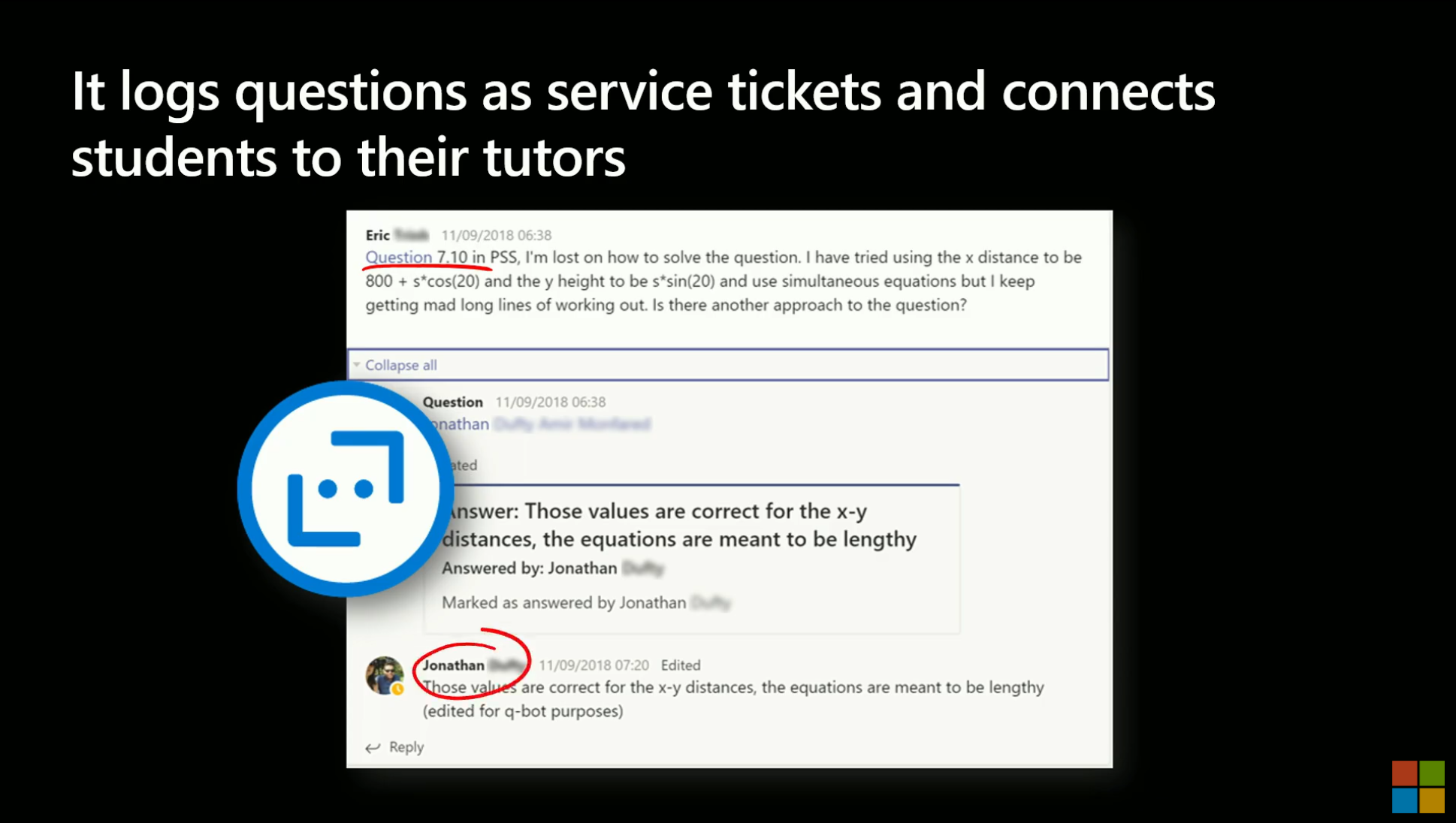 Teamsの事例はニューサウスウェールズ大学。スライドがむっちゃ多いですが。。500人を超えるクラスの授業をどう共有したりするか?というチャレンジ。最初はOneNoteやYoutubeで配信などしてた。でも遅い。2017年にTeamsにしたら1分でリアクションが。クイズも出せるしタブ内で実際に計算などを実行したりもできるように。生徒のポストが900%増えた。新しい問題としては生徒が質問などしたときに連絡したりする機会を失ってしまった。そこでBotにQ&Aをさせることに。200カテゴリににおよぶQ&Aが2週間でたまった。QnA Maker使ってQ&Aを生成、セルフトレーニングでAI化。生徒がはった画像のコンテキストからもナレッジを引っ張ってくる。500に及ぶパーソナライズされたMLモデルがあったり大量の階層データを保持してGraphしたり。すごく実用的で先進的な事例でした。